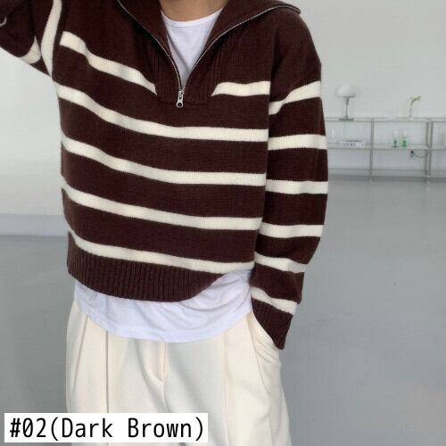 Nomikuma 因果ハーフジッパーターンダウン襟ストライププルオーバーセーター女性秋冬ロング Lseeve ニットトップス 2022 オータム 秋物 ウィンター 冬物 kor76709412845