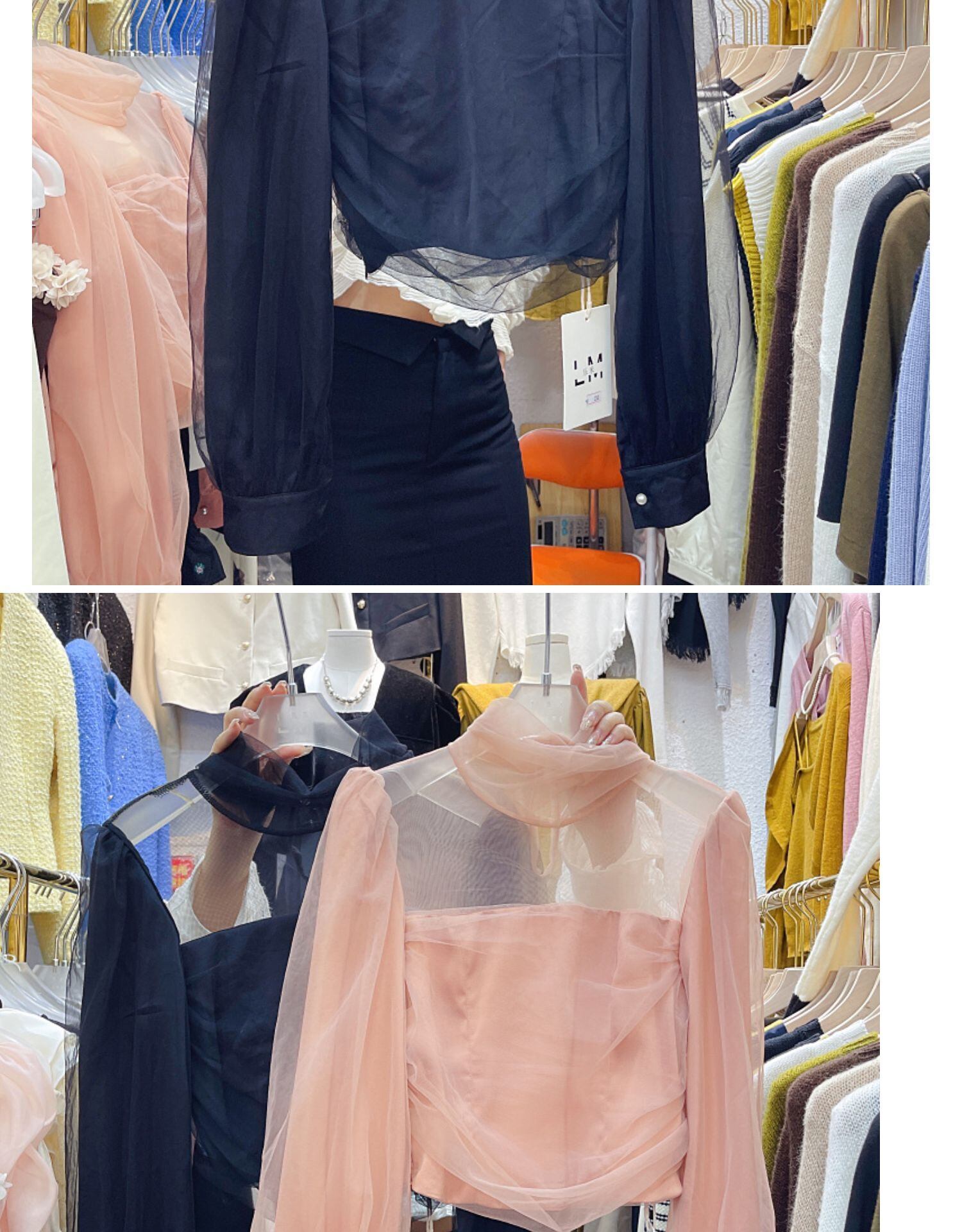 ノミクマ 2022年 秋 パイルカラー セクシー シースルー ガーゼ パッチワーク ブラウス ランタンスリーブ プルオーバーシャツ オータム 秋物 kor6714195085