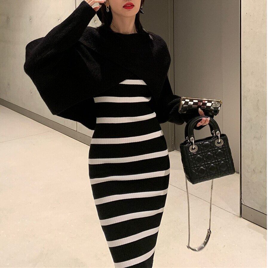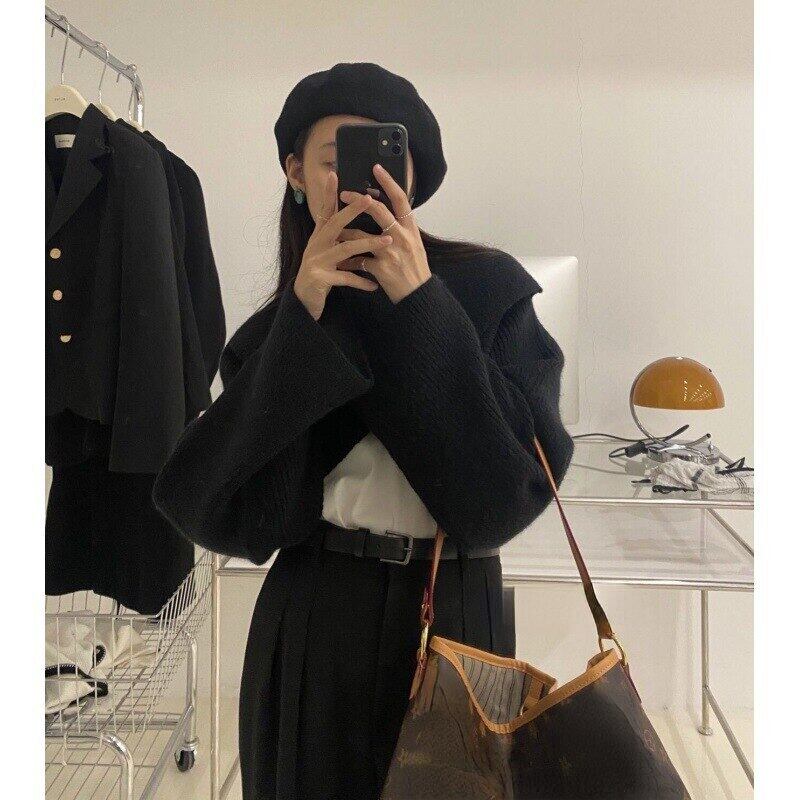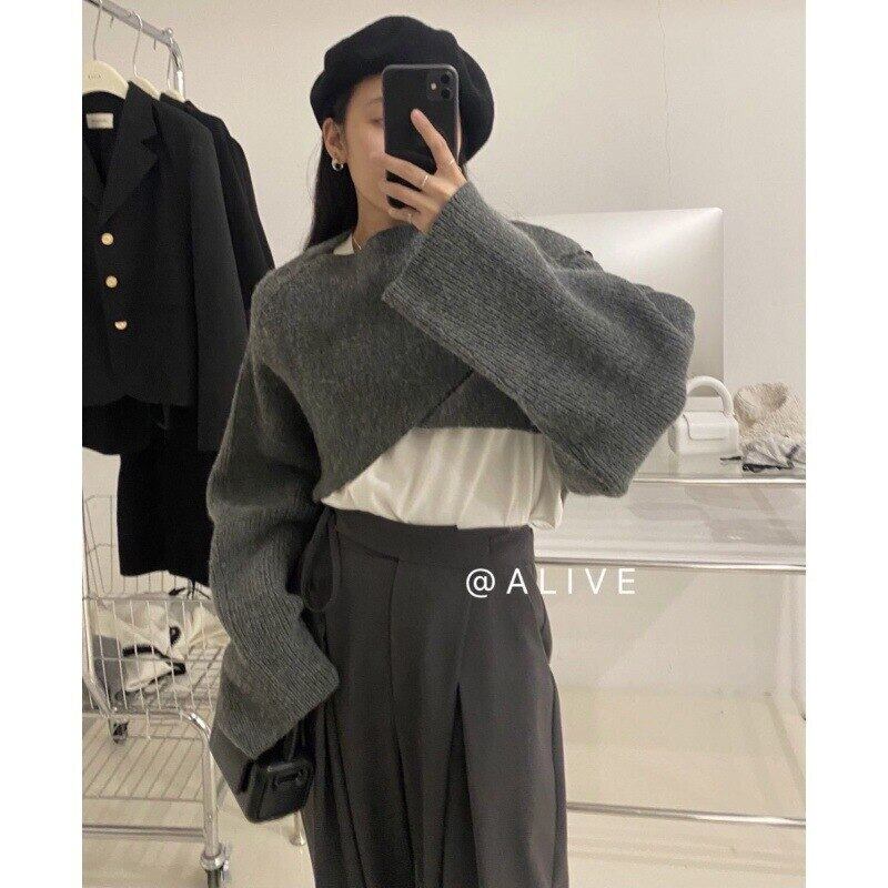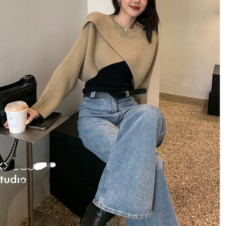 Nomikuma 秋冬不規則クロッププルオーバーセーター長袖 O ネックニットショールコートトップ因果女性ニット ロング オータム 秋物 ウィンター 冬物 Oネック kor46480535094