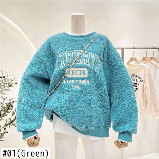 Nomikumaラムウールプラスベルベットスウェットシャツ女性ルース春刺繍手紙暖かいプルオーバーパーカージャンパー レッド スプリング 春物 kor91743259197
