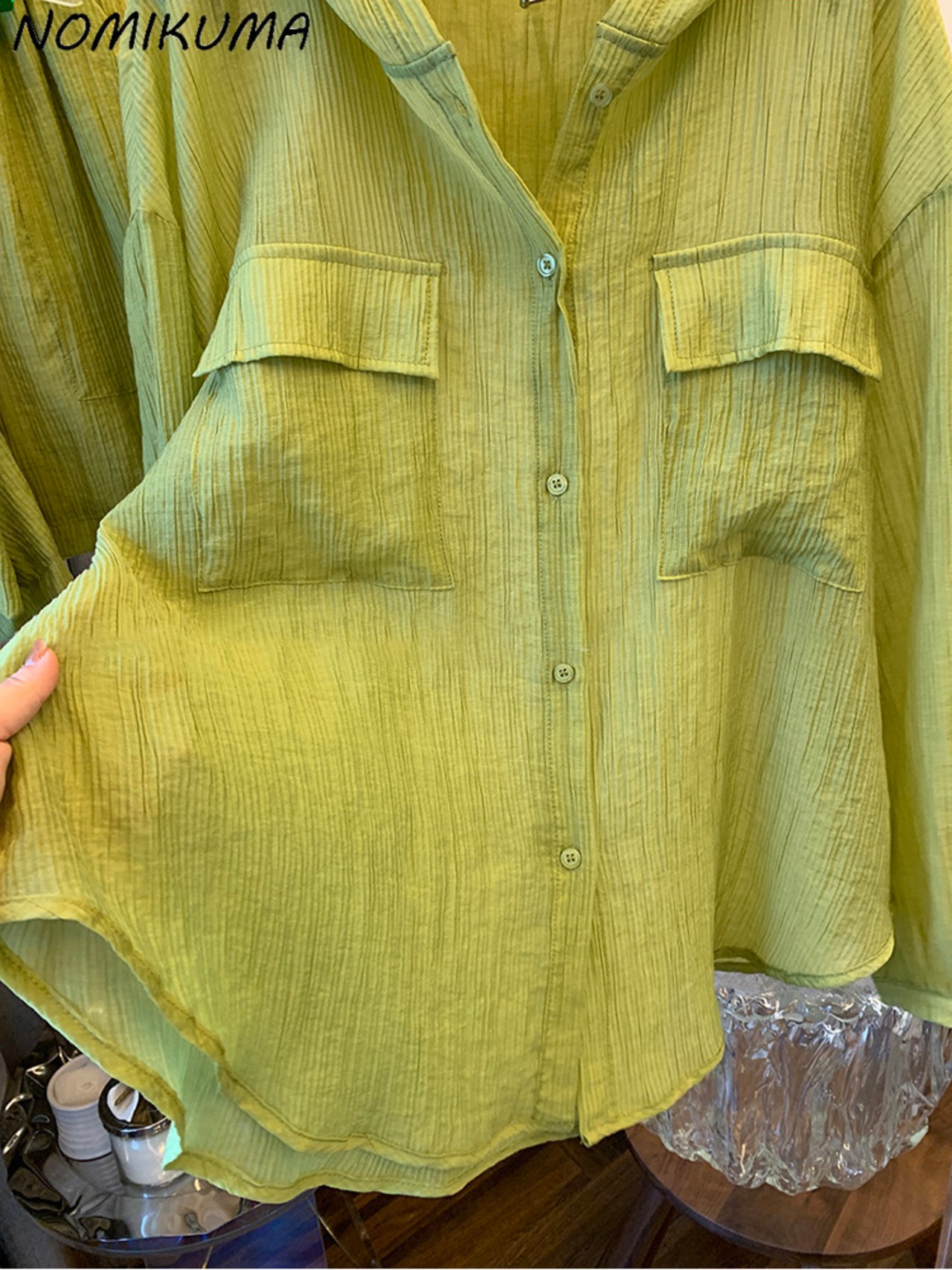 Nomikuma Folds Causal 2022 夏ツーピーススーツ フード付きサムプロテクションブラウス+ウエストワイドレッグショーツセット サマー 夏物 ブルマー ワイドパンツ kor38784474286