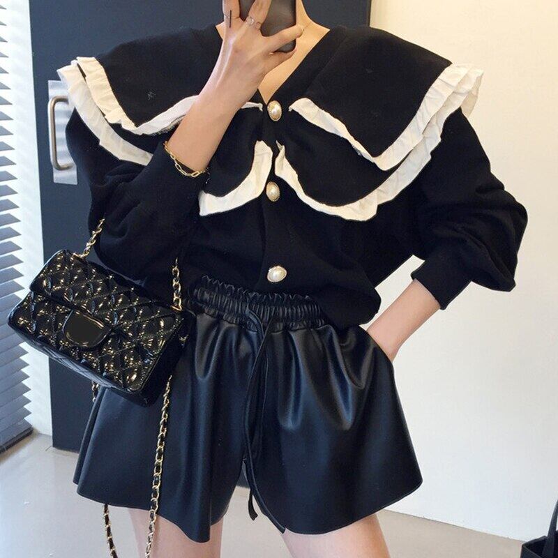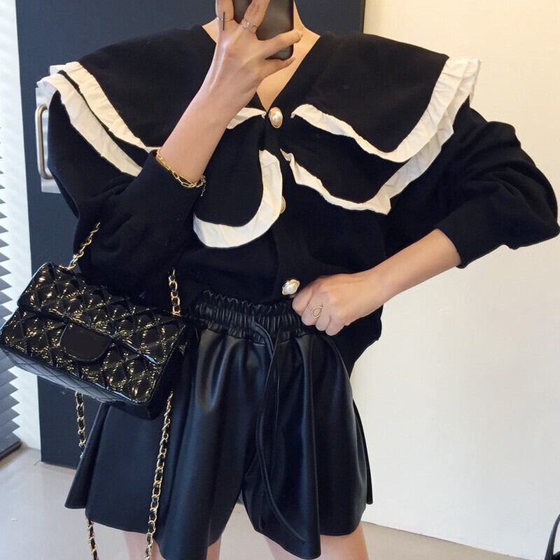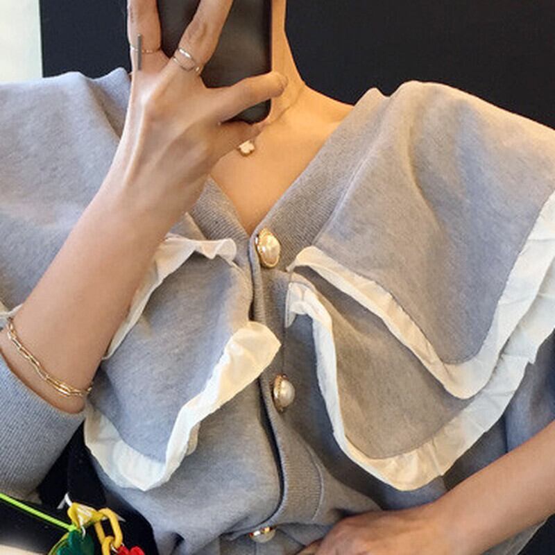 ノミクマ ヒットカラー フリル ピーターパンカラー スウェット カーディガン 長袖 シングルブレスト パーカー ジャケット 2021秋 6L602 ロング オータム 秋物 kor48765496455