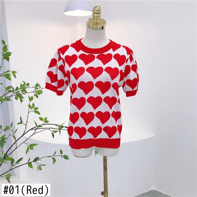 Nomikuma ラブハートプルオーバーセーター因果パフスリーブ O ネックニットトップス 2022 夏甘い女性ニットジャンパー 大人ガーリー スウィート キュート カジュアル サマー 夏物 Oネック kor61307717198