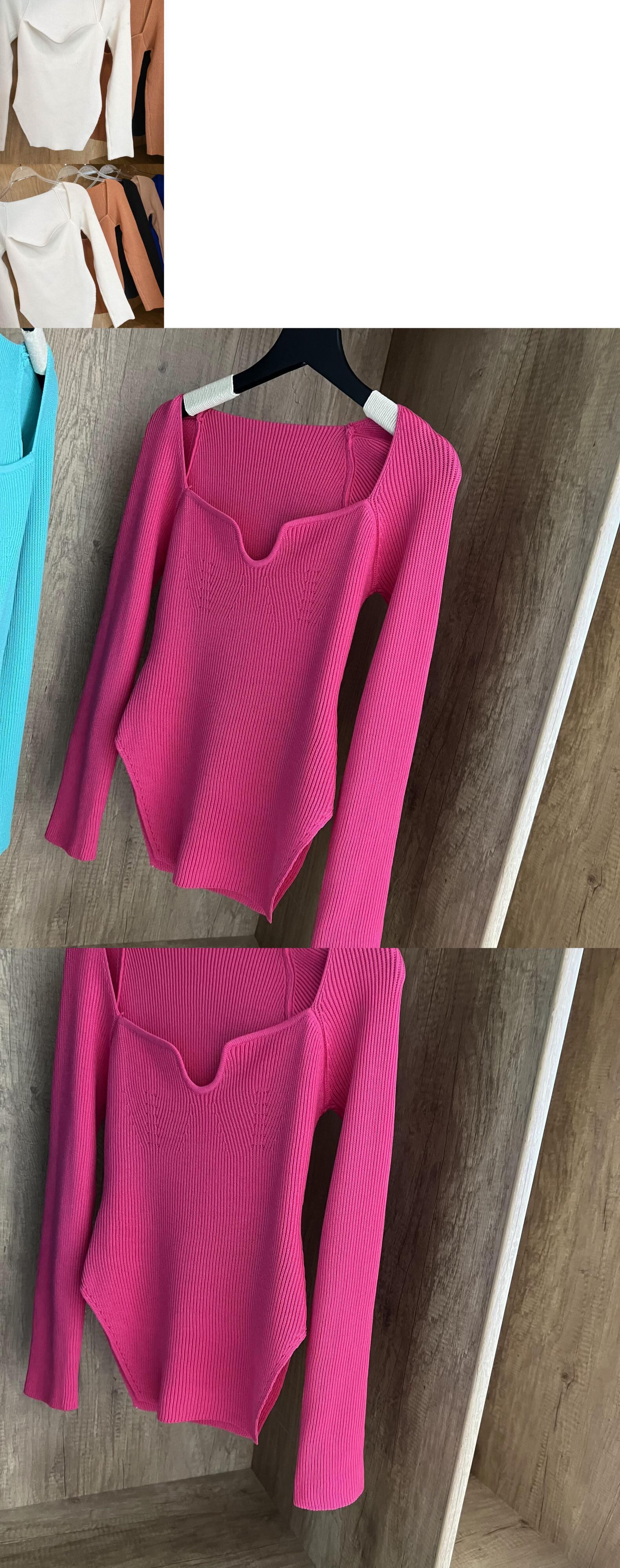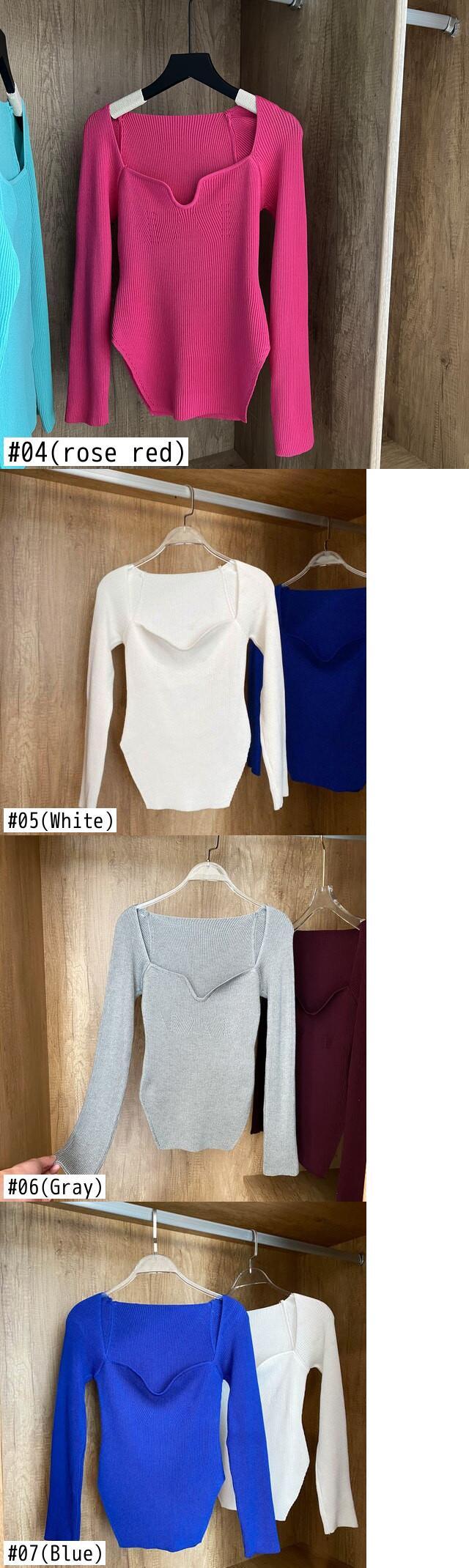 ノミクマ セーター ドゥ 春 秋 スクエアカラー スリム ボディコン ニット セーター ジャージ スプリング 春物 オータム 秋物 スクウェア kor72766866853