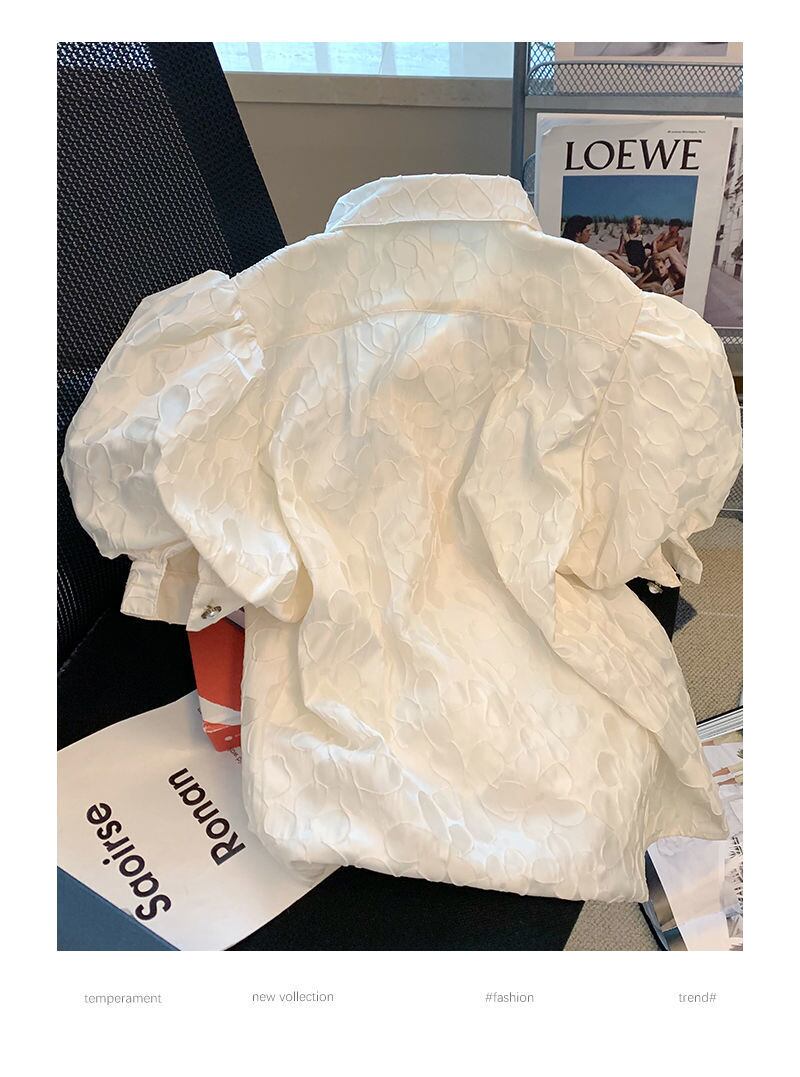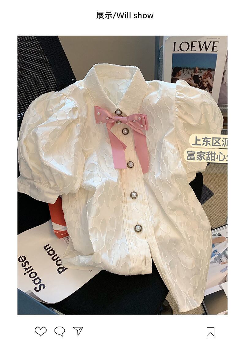Nomikuma シックなジャカード半袖女性ブラウス甘いビーズちょう結びシャツ 2022 トップデモーダ ショート リボン ハーフスリーブ 大人ガーリー スウィート キュート カジュアル kor19310976883