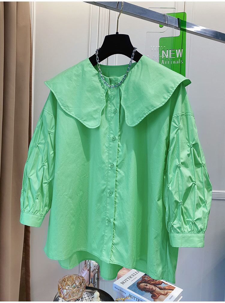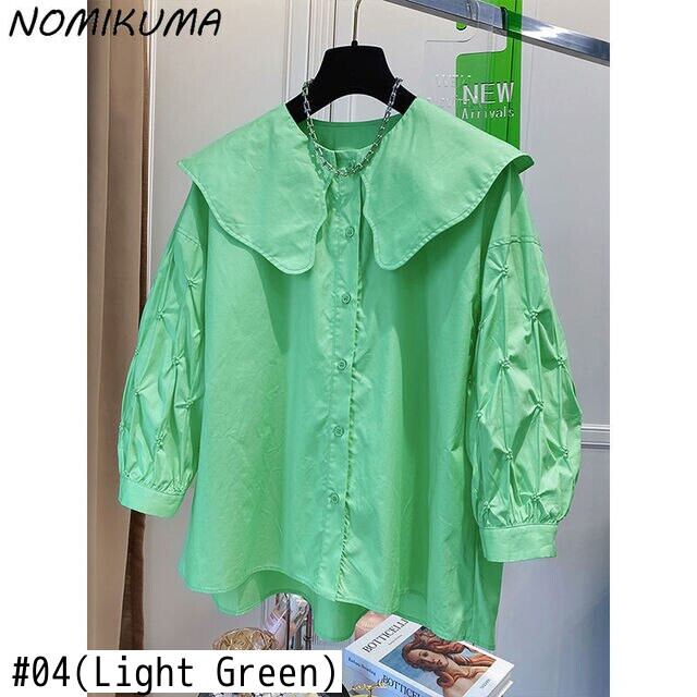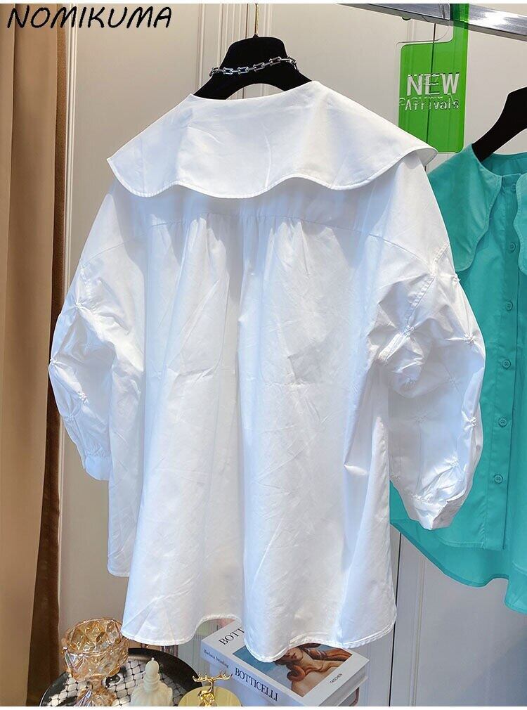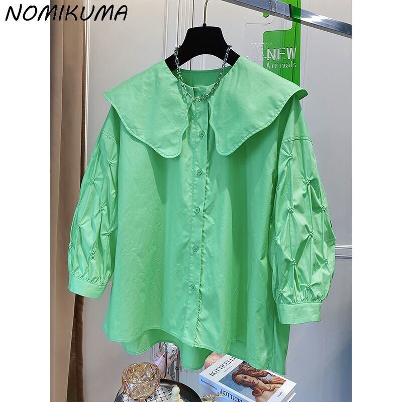 Nomikuma シックなひだパフスリーブ女性ブラウススウィートピーターパンカラートップシャツ 2022 夏デモーダ 大人ガーリー キュート カジュアル サマー 夏物 kor64865033622