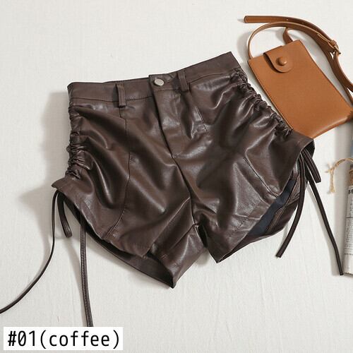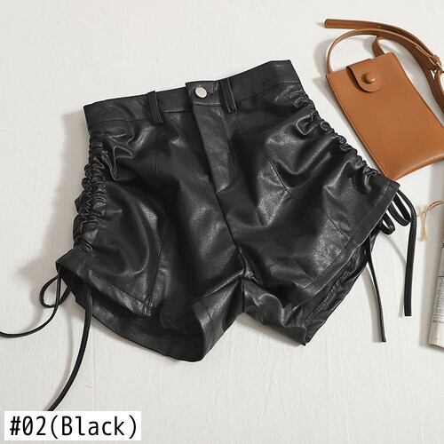 Nomikuma 2022 秋セクシーな PU レザーショーツ女性ウエストドローストリングワイドレッグショート冬ボトムス オータム 秋物 ウィンター 冬物 ブルマー ワイドパンツ kor95341185303