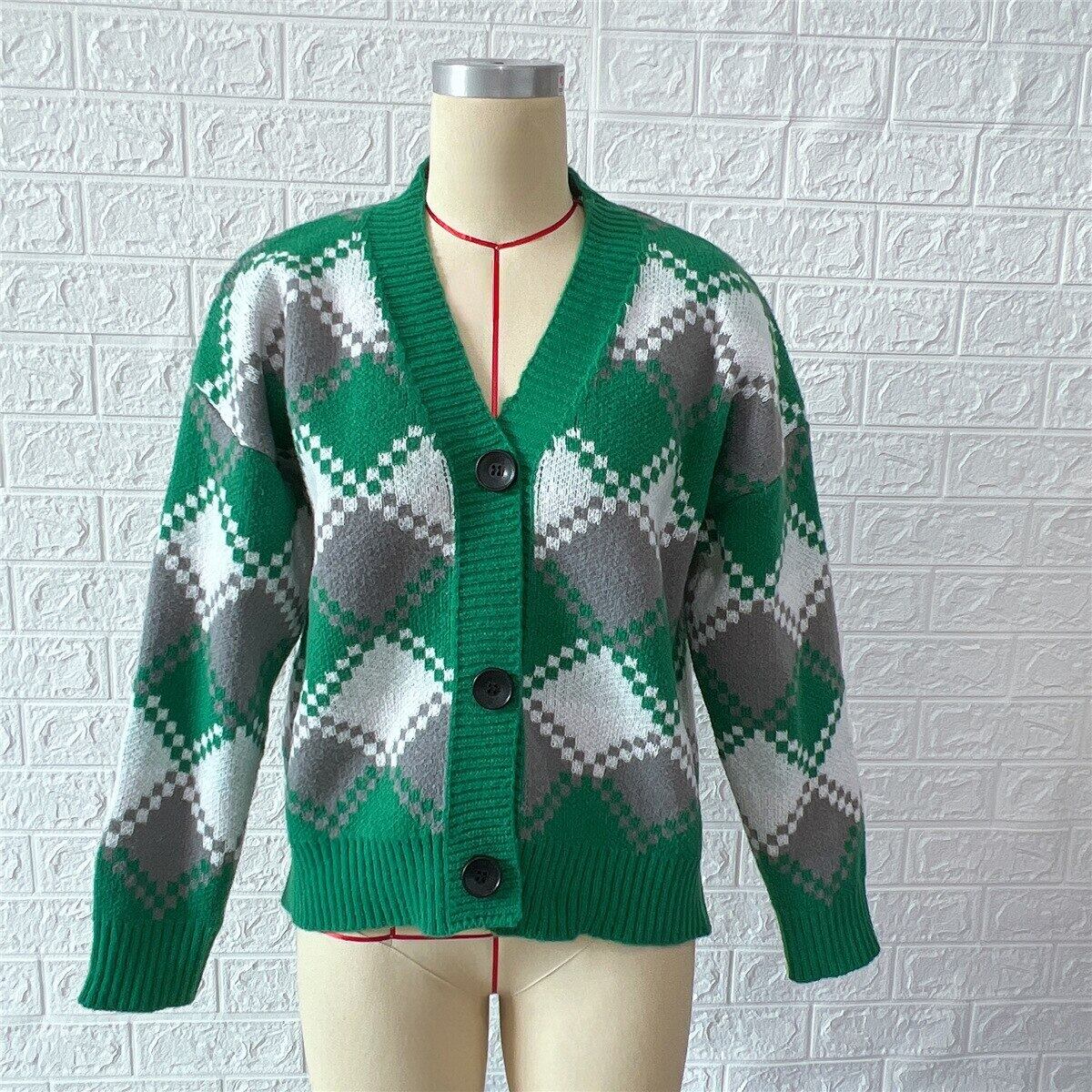 Nomikuma 2022 秋冬プルヒットカラーアーガイルセーター女性因果長袖 V ネックニットカーディガン ロング オータム 秋物 ウィンター 冬物 Vネック kor71227007210