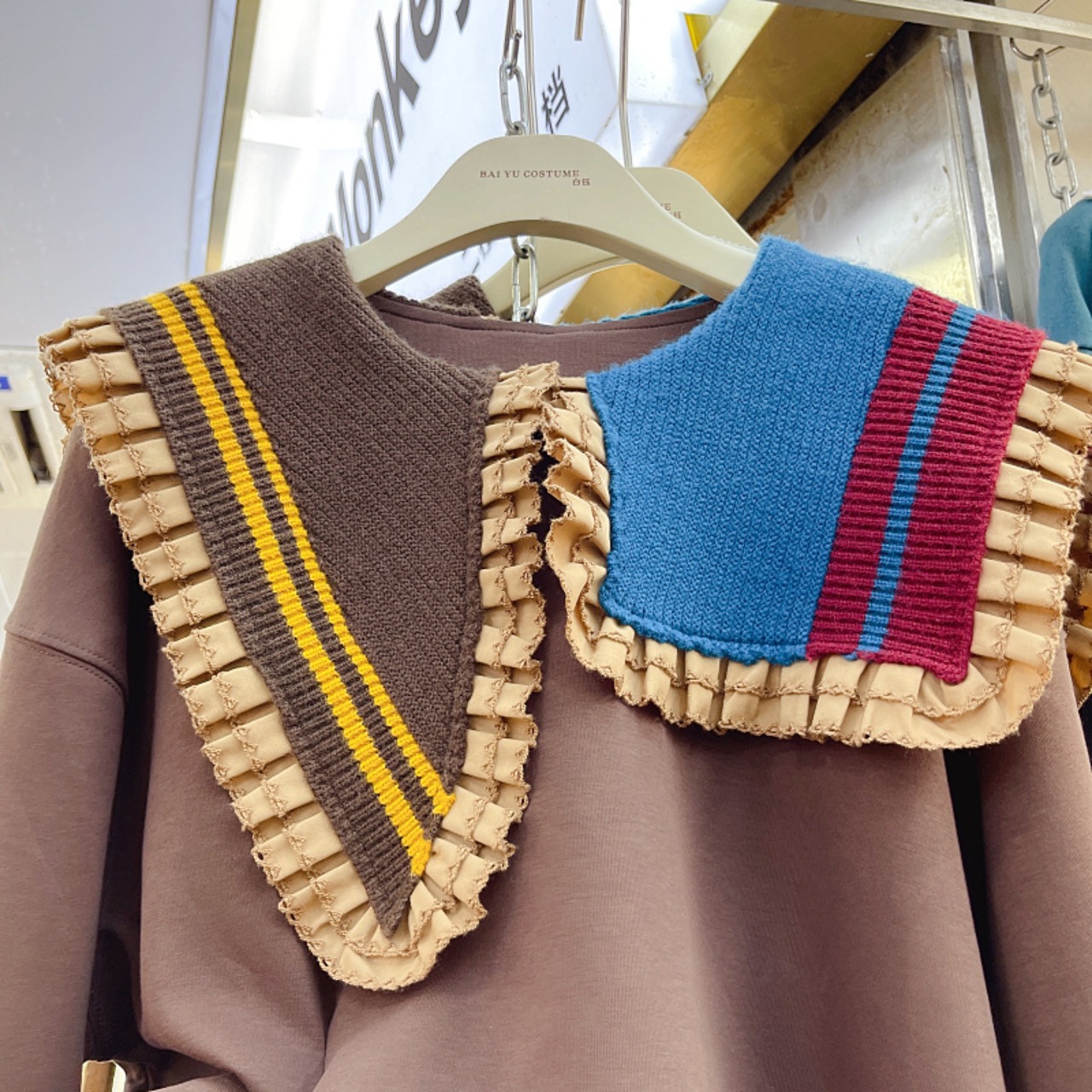 Nomikuma 2022 秋パッチワークヒットカラーニットピーターパン襟スウェットシャツ因果長袖女性パーカー ロング オータム 秋物 kor70952105584