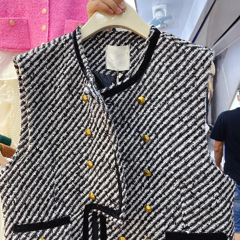 Nomikuma 2022 秋のヒットカラーストライプ女性チョッキノースリーブダブルブレスト O ネックベストジャケット オータム 秋物 Oネック kor13749092779