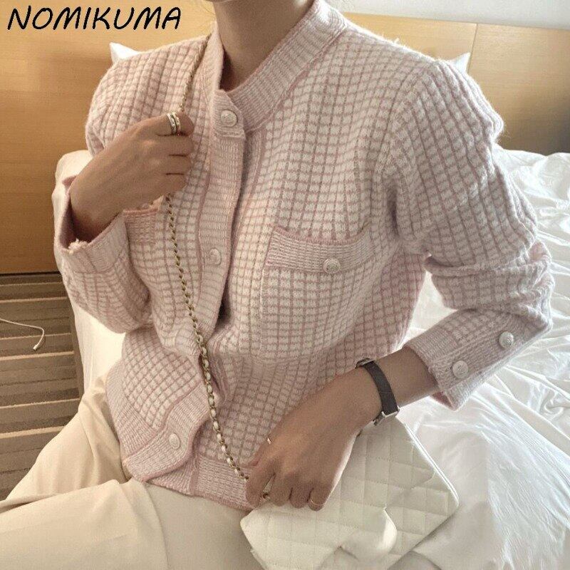 ノミクマ チェック 秋冬 セーターコート 長袖 シングルブレスト Oネック ニット カーディガン 2022年 ニット トップス ロング オータム 秋物 ウィンター 冬物 kor69464687491