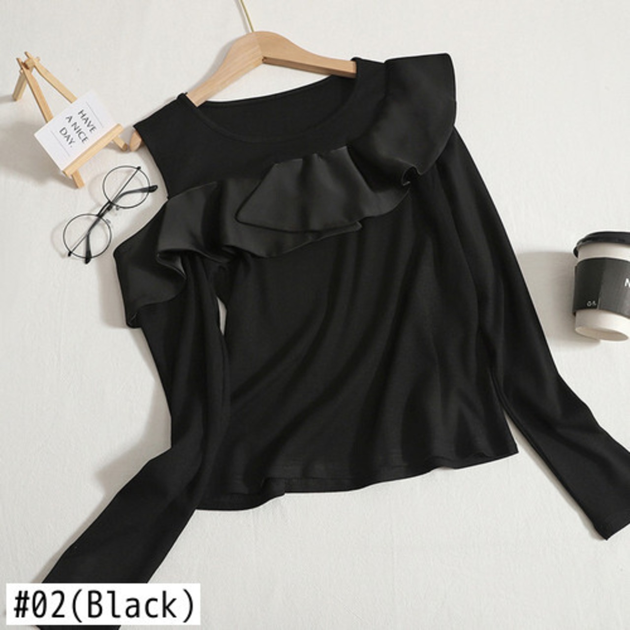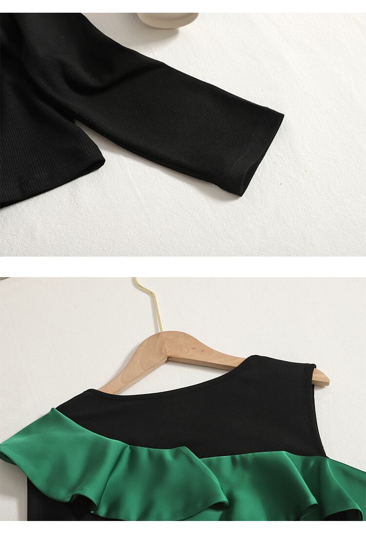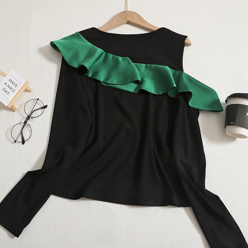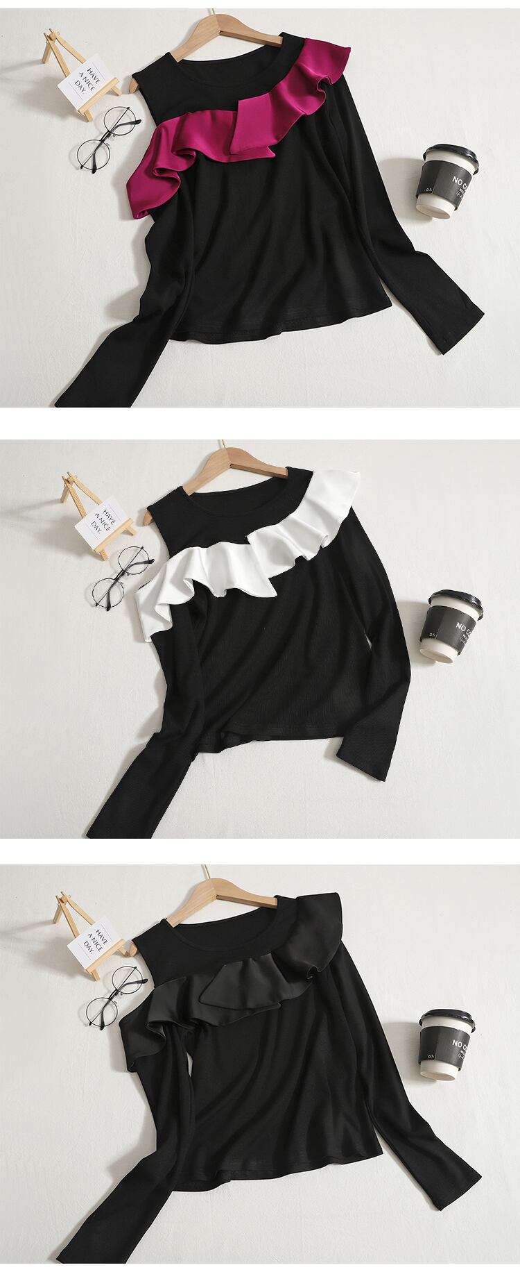 Nomikuma パッチワークヒットカラーフリルグラフィック Tシャツ長袖 2022 秋の女性 Tシャツシックな Tシャツトップス ロング オータム 秋物 kor56950920959