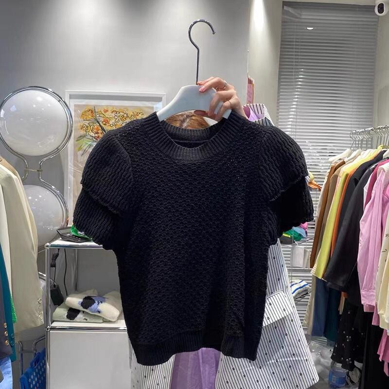 Nomikuma スウィートフリル半袖女性ニット 2022 春夏ニットトップス因果 O ネックプルオーバーセーター ショート ハーフスリーブ 大人ガーリー キュート カジュアル スプリング 春物 サマー 夏物 Oネック kor7043303863
