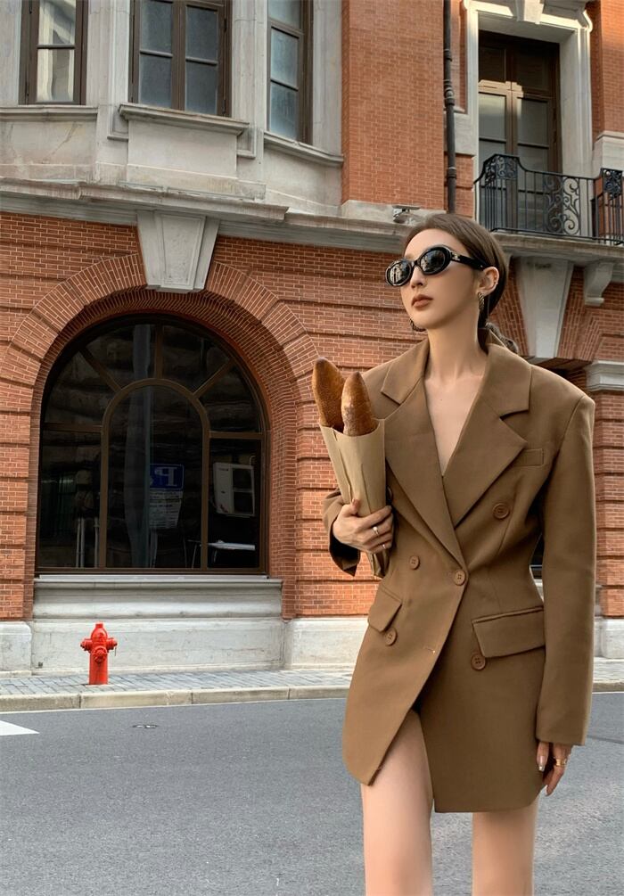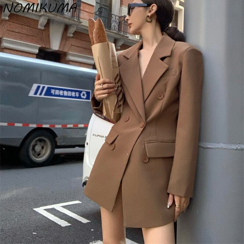 ノミクマ ノッチドカラー ダブルブレスト ブレザー コート スリムウエスト スーツ ジャケット 2022年 秋 ブレザー オータム 秋物 kor65092900434