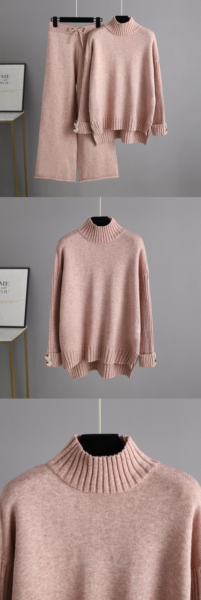 Nomikuma 2022 秋冬ニットスーツ女性のスタイルハーフカラーセーター肥厚因果ツーピーススーツ オータム 秋物 ウィンター 冬物 kor73690527261