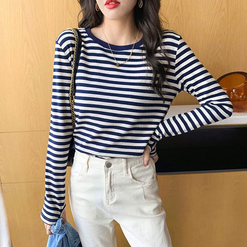 Nomikuma 2022 ストライプニット女性秋冬ベーシックニットトップス因果長袖 O ネックプルオーバーセーター ロング オータム 秋物 ウィンター 冬物 Oネック kor31240734055