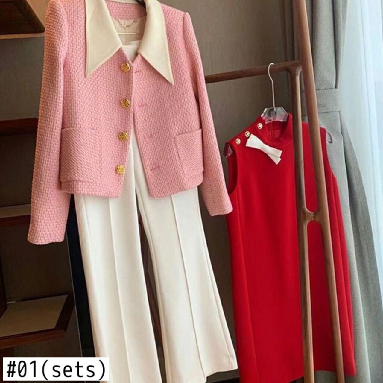 ノミクマ ツーピース レディース セット ヒットカラー ターンダウンカラー ツイードコート + ウエストスーツ ロング ワイドレッグパンツ 2022 ワイドパンツ kor34194111596