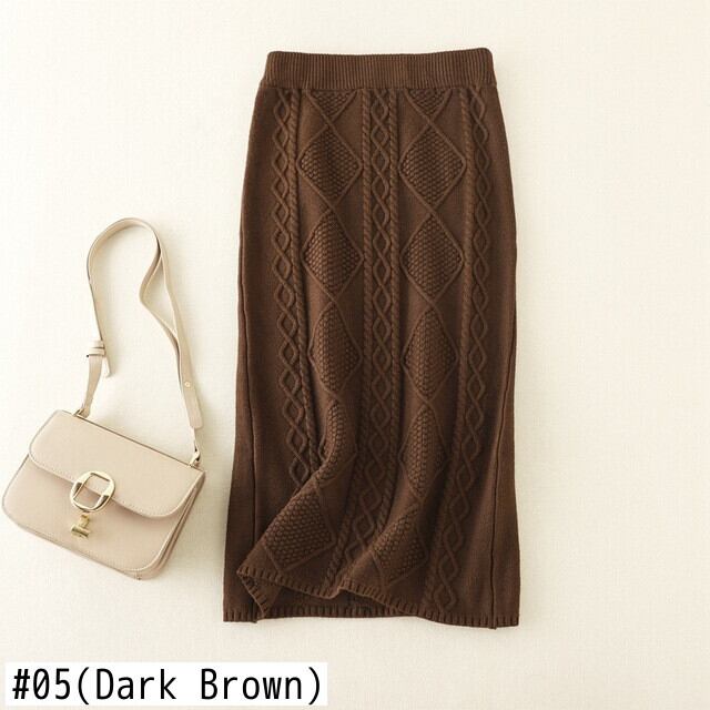 Nomikuma 厚手のニット女性スカート秋冬段 Faldas ペチコート固体暖かいウエストスリムセータースカート オータム 秋物 ウィンター 冬物 ソリッドカラー kor94249955999