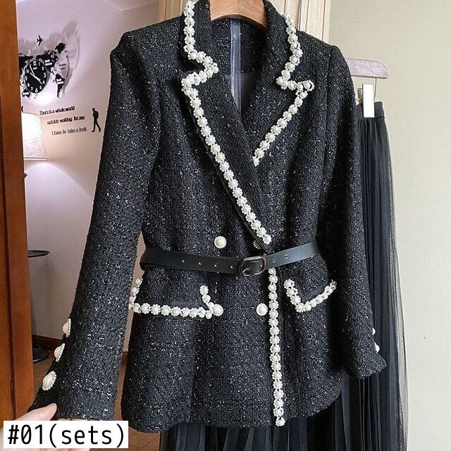 ノミクマ ツーピースセット オールマッチ スーツ ジャケット パール ウエスト スカート セット 春 秋 メッシュ スカート コーデ 2022 スプリング 春物 真珠 kor27549689839
