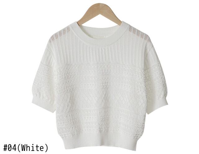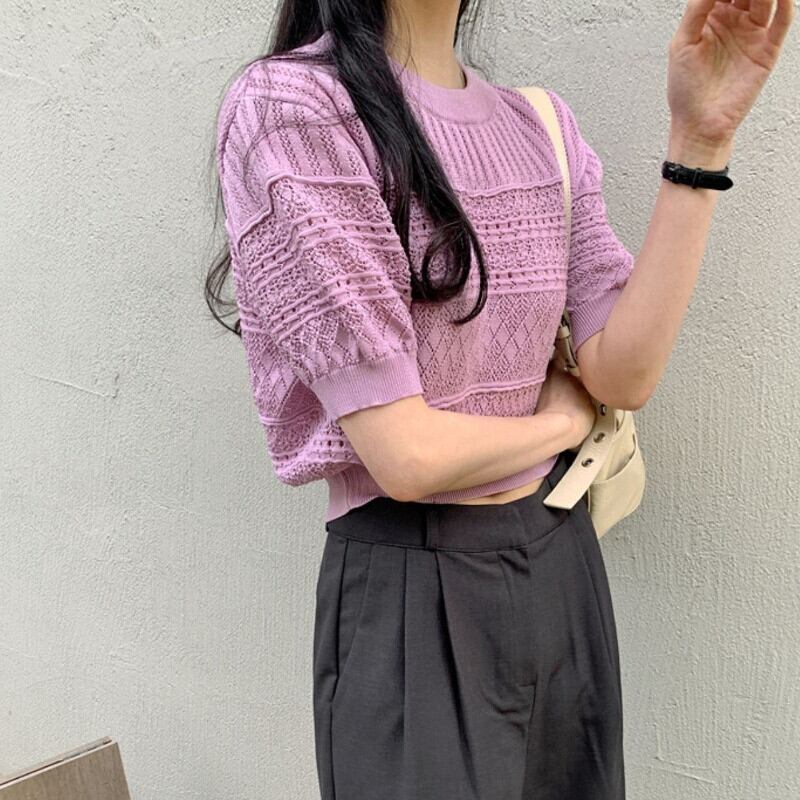 Nomikuma シックなフック中空アウトニット女性の夏の薄いプルオーバーニットトップス因果パフスリーブ O ネック 2022 セーター サマー 夏物 Oネック kor57972007