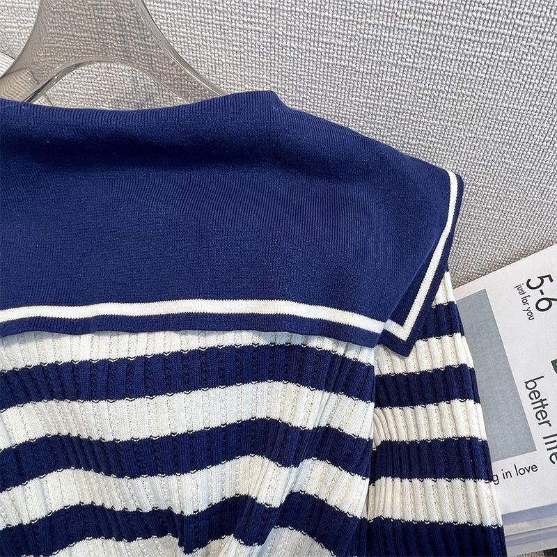 Nomikuma ネクタイセーラーカラーストライプセーター女性 2022 秋ニットトップス長袖スリムニットジャンパー ロング オータム 秋物 kor64790451410