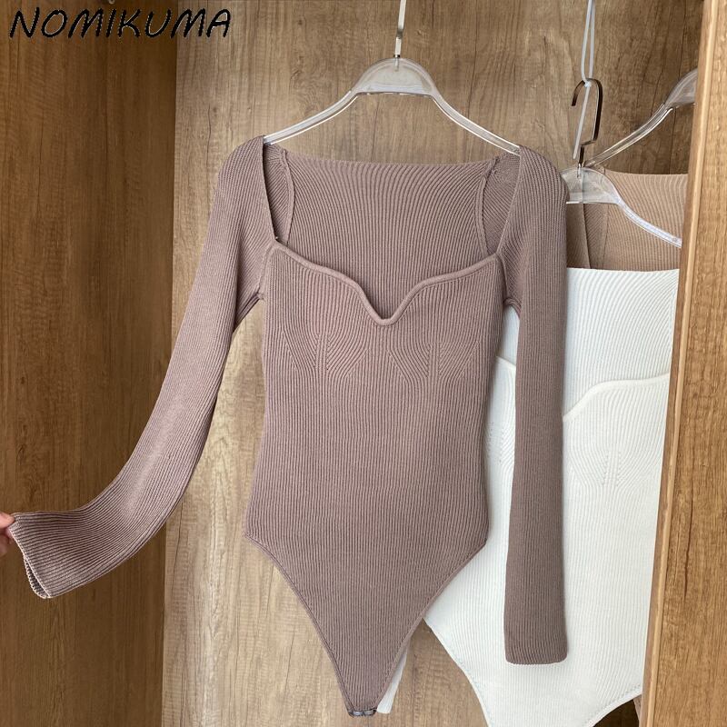 ノミクマ セーター・ド・スプリング 秋 スクエアカラー シンプル ニット 長袖 トップス レディース 2022 ロング 春物 オータム 秋物 スクウェア kor9912249170