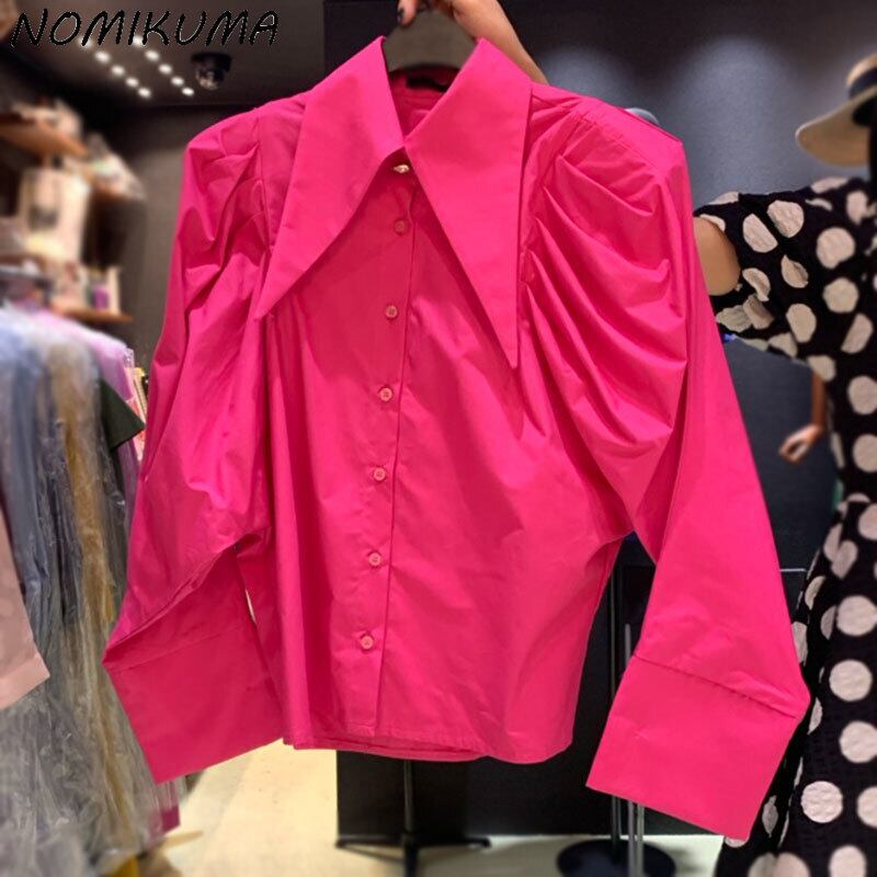 Nomikuma ターンダウンカラーブラウス女性 2022 秋折り長袖シャツソリッドデモーダ ロング オータム 秋物 ソリッドカラー kor17008774380