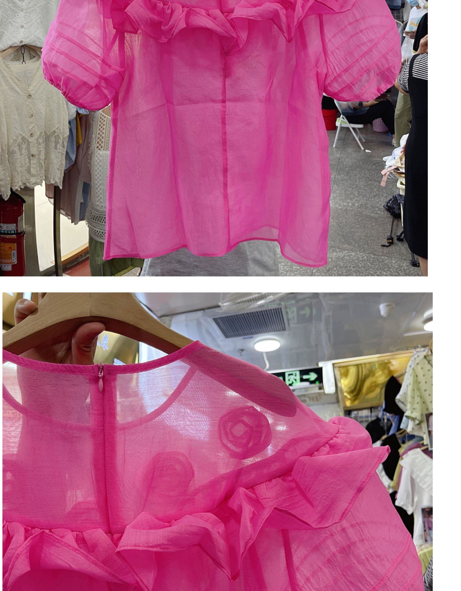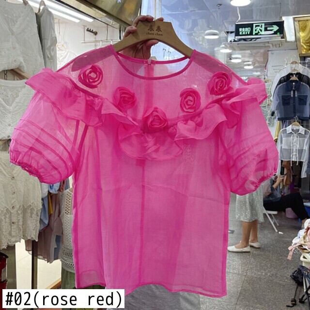 Nomikuma 2022 夏の女性ブラウスシックな 3D 花フリル甘いシャツ因果 O ネックパフスリーブデモーダ 大人ガーリー スウィート キュート カジュアル サマー 夏物 Oネック フラワーデザイン kor16619095101
