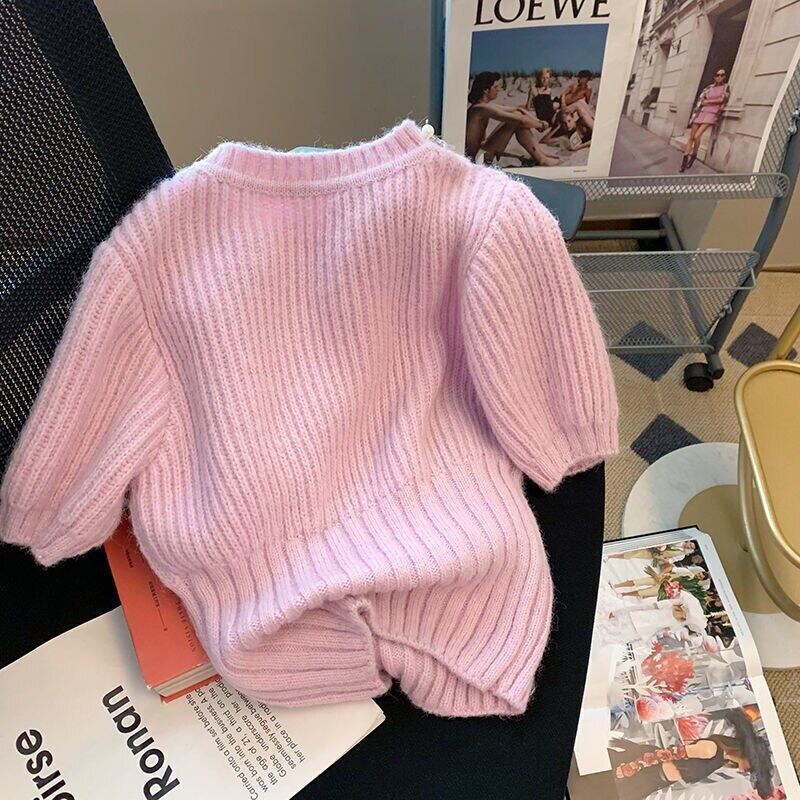 Nomikuma シックなビーズショートセーター女性 2022 春甘いパフスリーブニットスリムウエストニットトップス 大人ガーリー スウィート キュート カジュアル スプリング 春物 kor13789806119