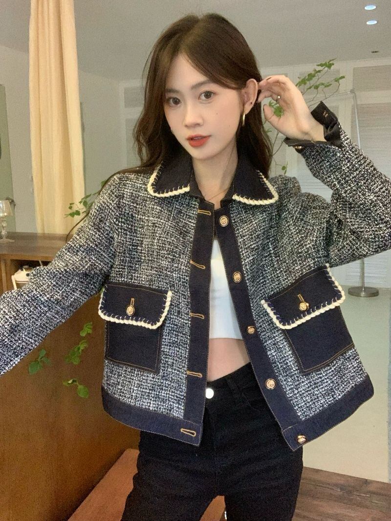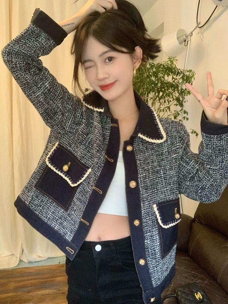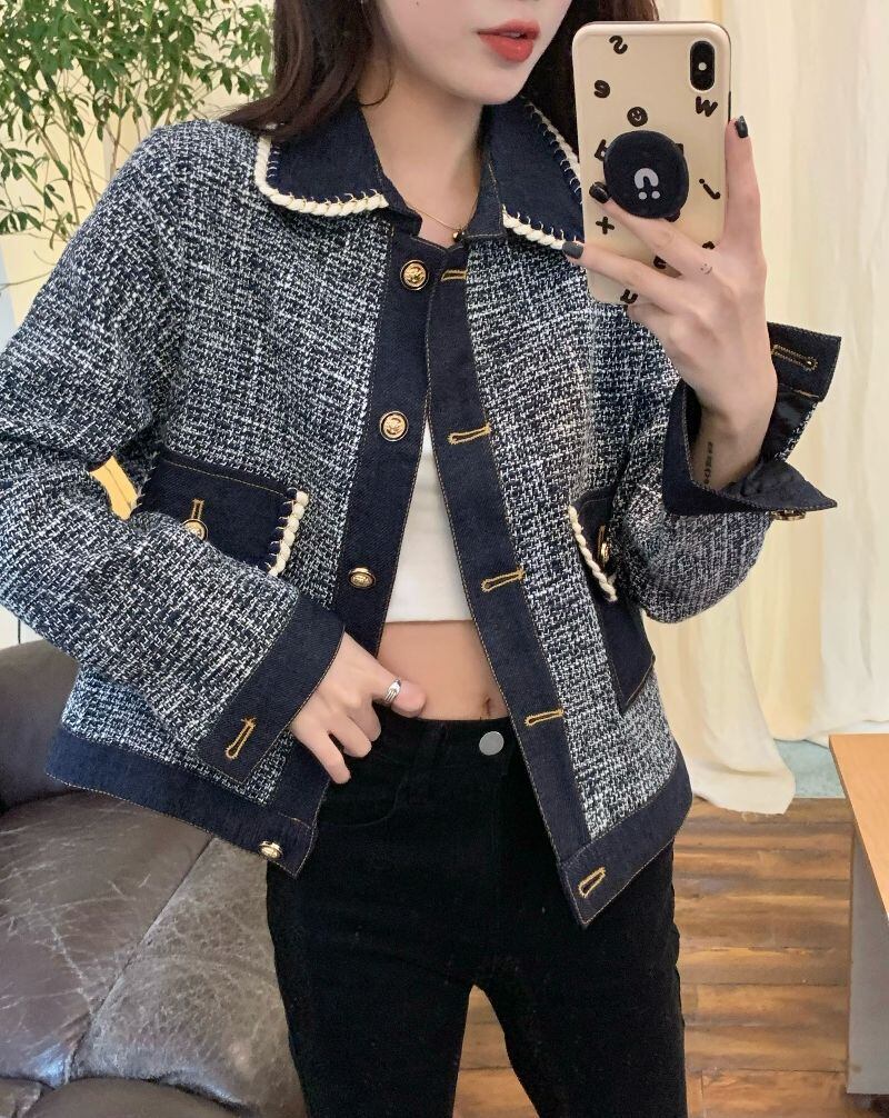 Nomikuma 2022 秋パッチワーク地民コート女性コントラストカラーカウボーイ長袖ターンダウン襟ジーンズジャケット ロング オータム 秋物 kor69561145521