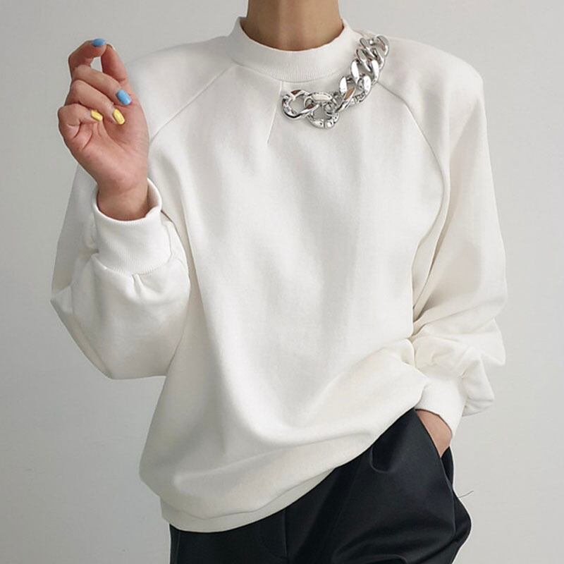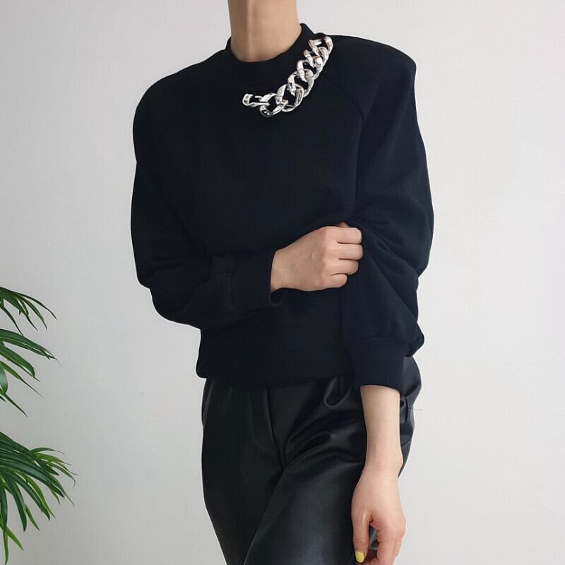 ノミクマ シック 秋 スタンドネック プルオーバー トレーナー チェーン パフスリーブ パーカー 2021 トップス ジャンパー 6X001 オータム 秋物 kor41201967704