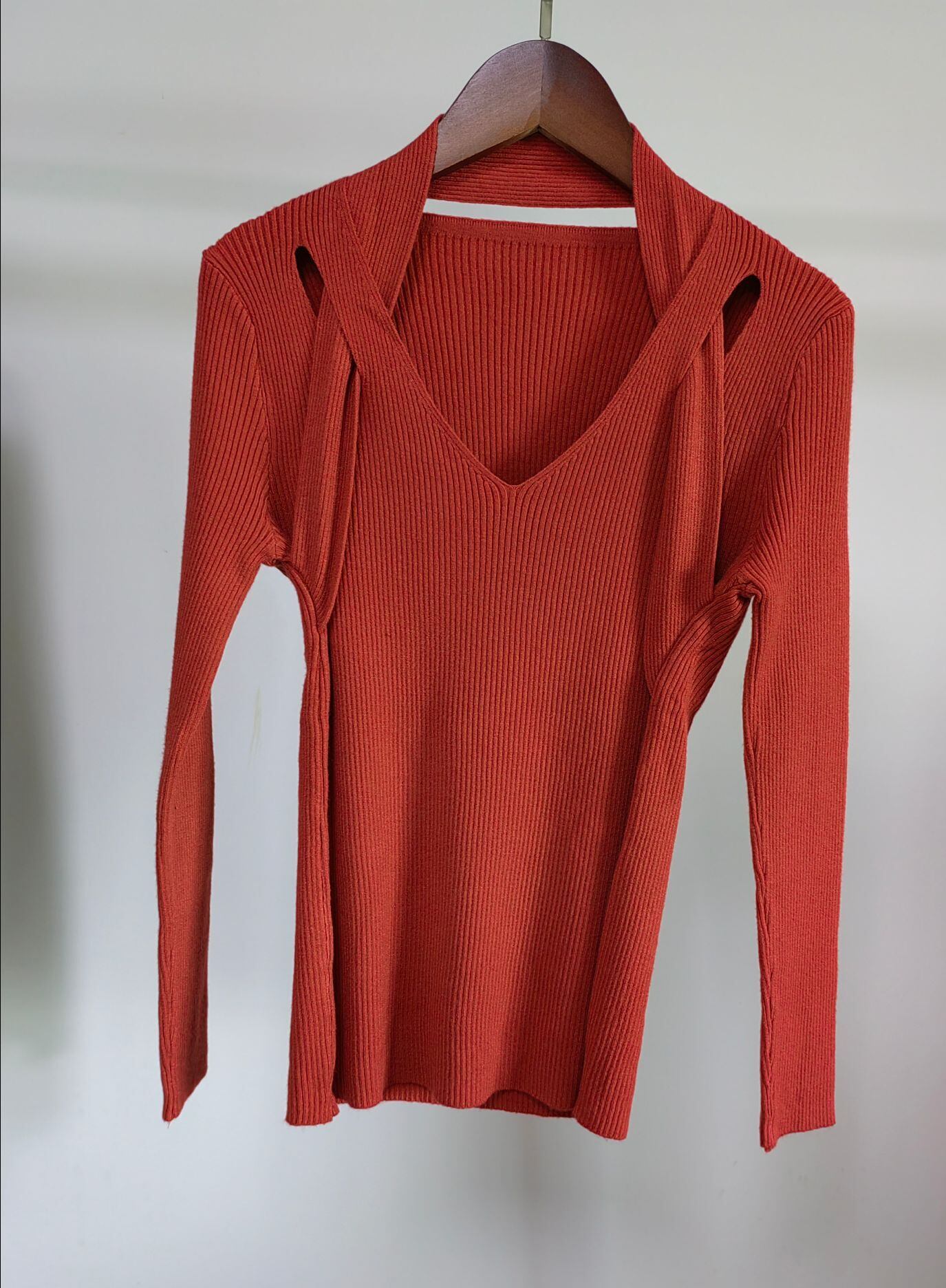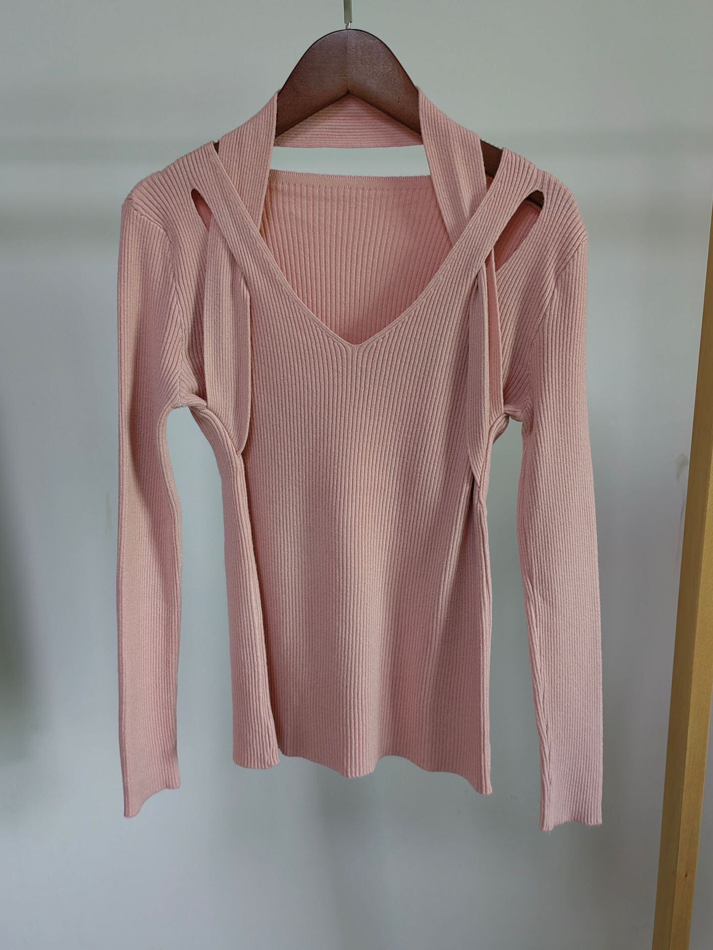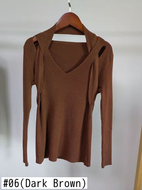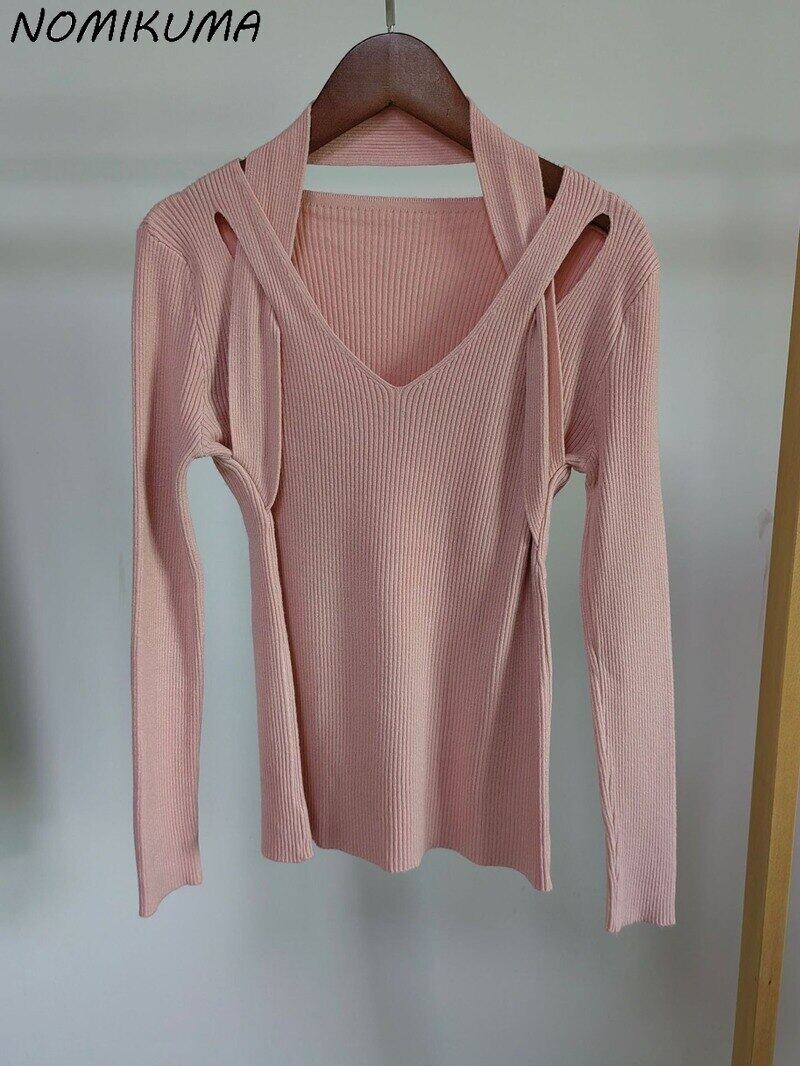 Nomikuma 秋セクシーな V ネックホルターニット女性長袖ストレッチスリムニットトップス 2022 セーター ロング オータム 秋物 Vネック kor96485218631
