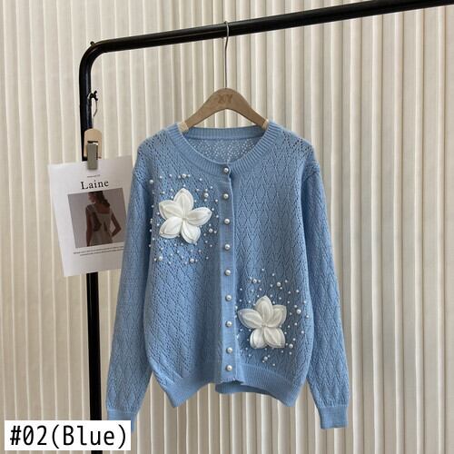 ノミクマ ニット コート ビーズ 花 無地 中抜き セーター 薄手 カーディガン 2022年 秋 ニット ジャケット オータム 秋物 ソリッドカラー フラワーデザイン kor77968550399