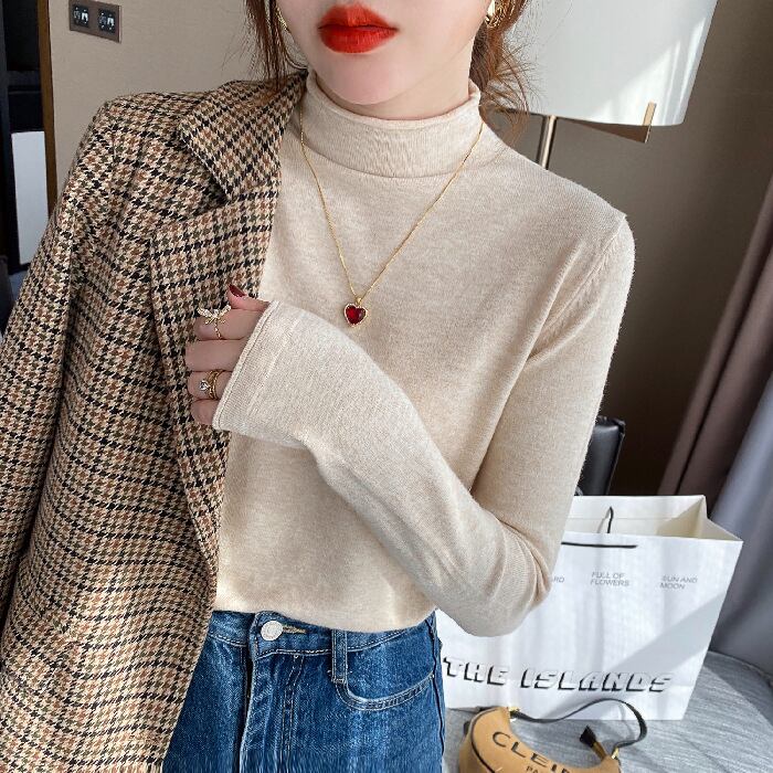 Nomikuma 2022 ストレッチニットプルオーバーハーフカラーソリッドベーシックニット長袖秋冬女性セーター ロング オータム 秋物 ウィンター 冬物 ソリッドカラー kor97134242203