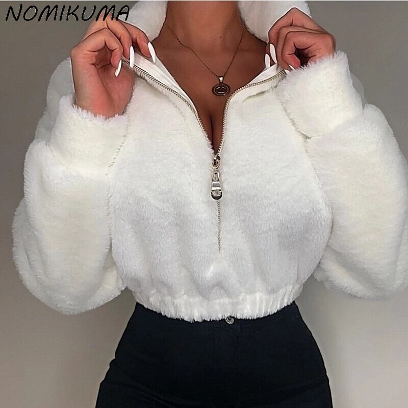 Nomikuma 秋冬長袖暖かい女性スウェットシャツジッパースタンドネックパーカー 2022 ウエストショートクロップジャンパー ロング オータム 秋物 ウィンター 冬物 kor22084757190