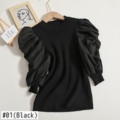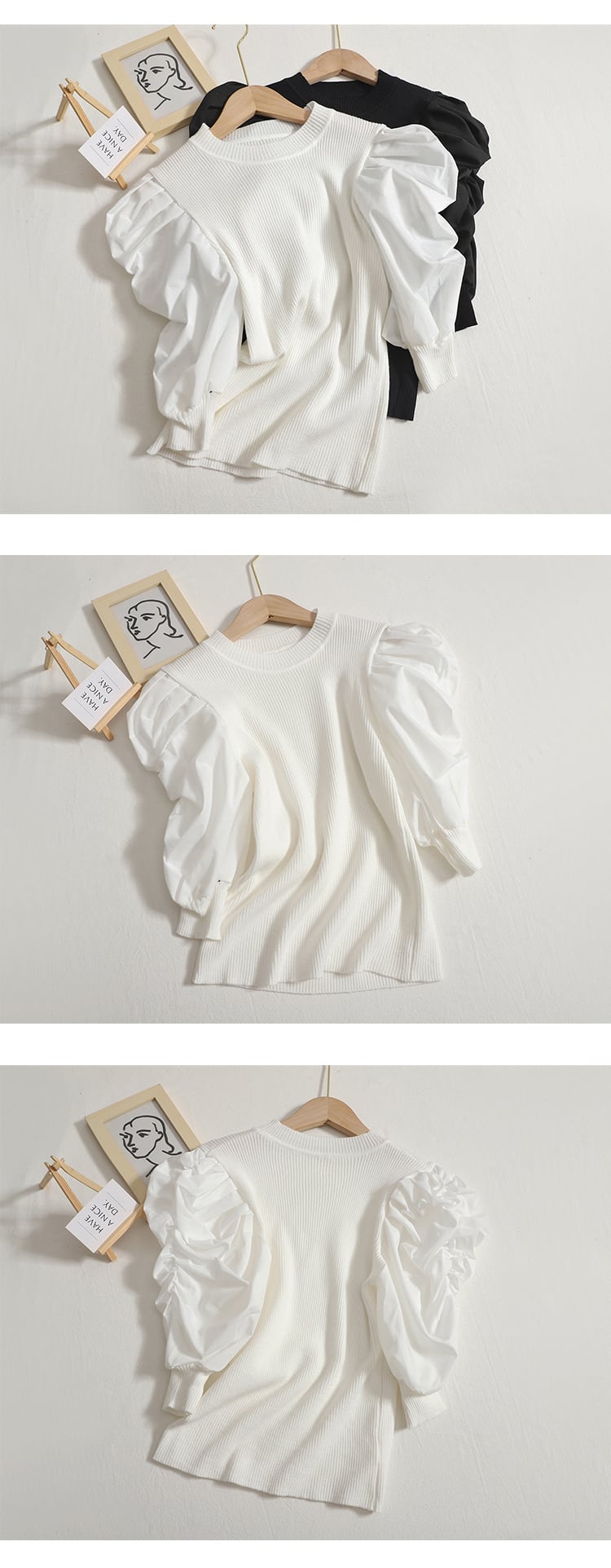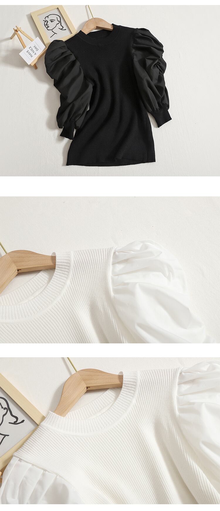 Nomikuma 秋のフェイク二枚パッチワークパフスリーブニットセーターシックな O ネックプルオーバーショートニットトップス 2022 女性 オータム 秋物 Oネック kor55498329024