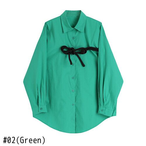 Nomikuma 2022 春の女性ブラウスちょう結びパッチブラウスパフスリーブターンダウン襟 Roupa トップス リボン スプリング 春物 kor69688471344