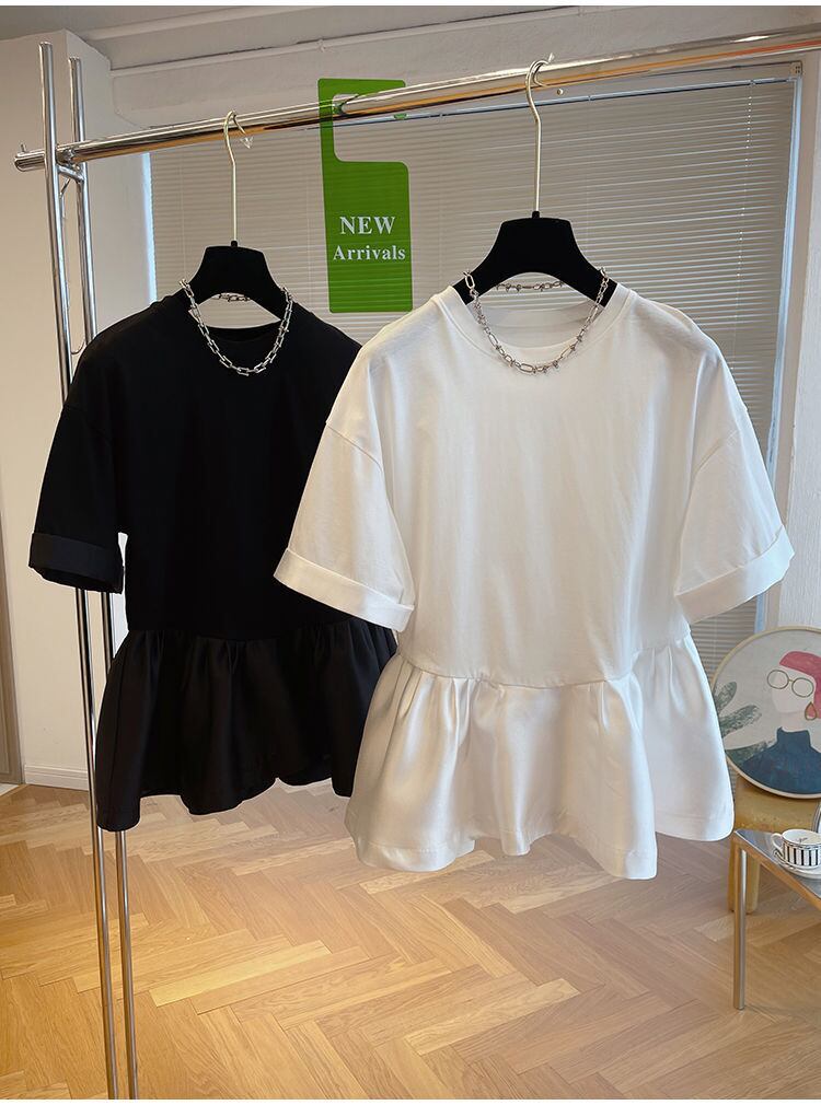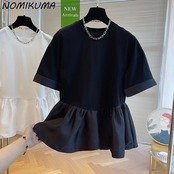 Nomikuma シックなスウィートウーマンドールシャツ因果半袖 O ネックグラフィック Tシャツ 2022 女性 ショート ハーフスリーブ 大人ガーリー キュート カジュアル Oネック kor17954727338