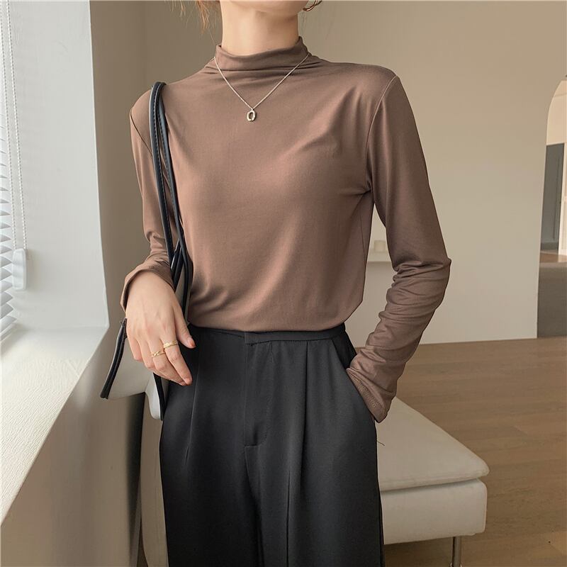 ノミクマハーフタートルネックスリムベーシック長袖Tシャツ女性2022秋冬無地グラフィックTシャツ ロング オータム 秋物 ウィンター 冬物 ソリッドカラー kor52682129403