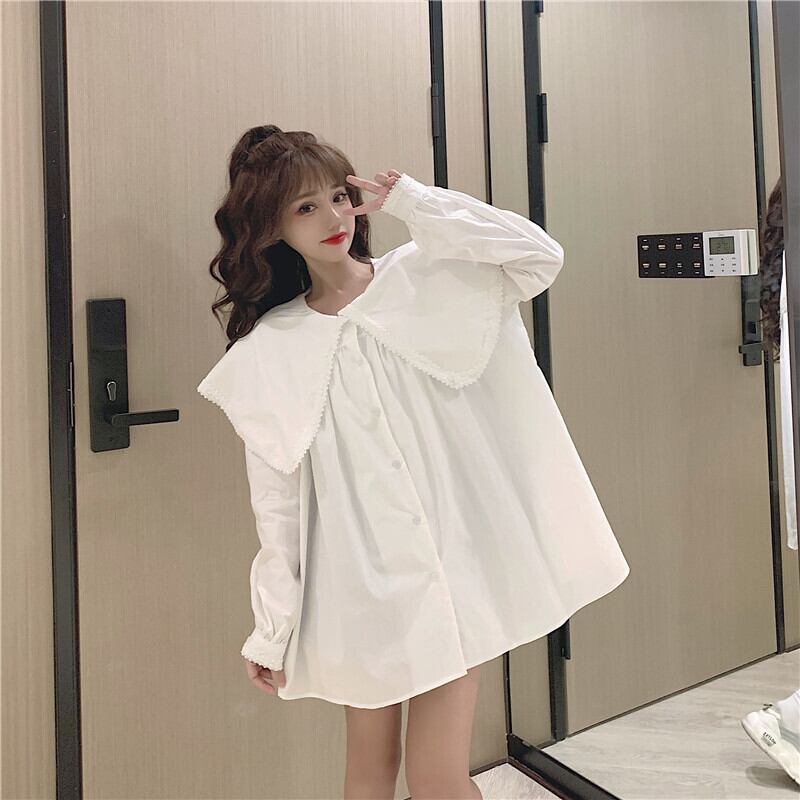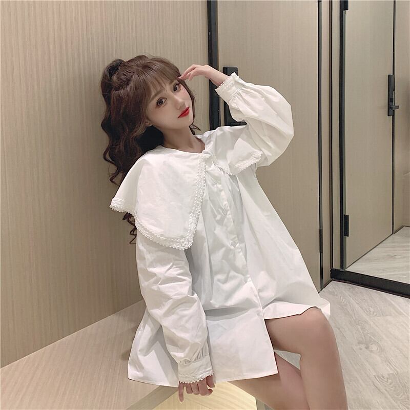 Nomikuma レースセーラー襟女性人形シャツ因果長袖スウィートブラウストップス 2022 小枝シックなスタイル ロング 大人ガーリー キュート カジュアル kor86445207574