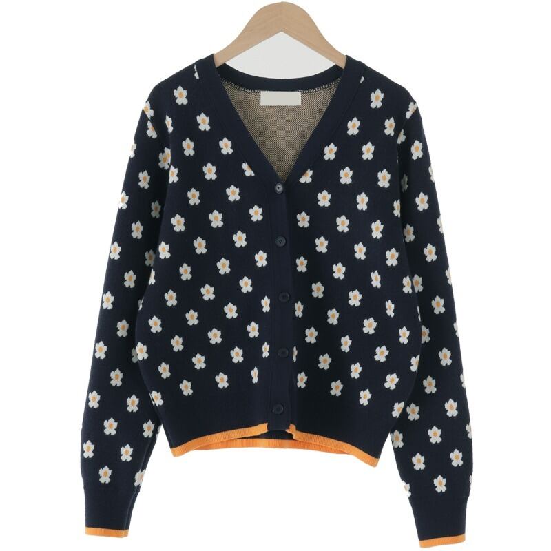 Nomikuma フローラルニットカーディガンコート長袖 V ネックスウィート女性セーター 2022 秋ニットトップス ロング 大人ガーリー キュート カジュアル オータム 秋物 花柄 Vネック kor42132618952