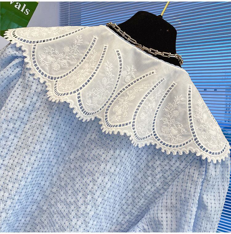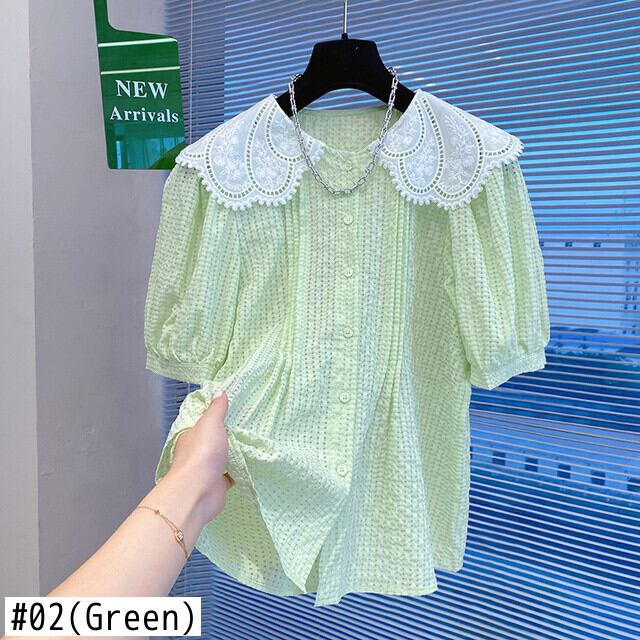 Nomikuma レディース トップス 2022 夏 ヒットカラー ピーターパン カラー ブラウス シャツ カジュアル シック パフスリーブ サマー 夏物 kor10229371269