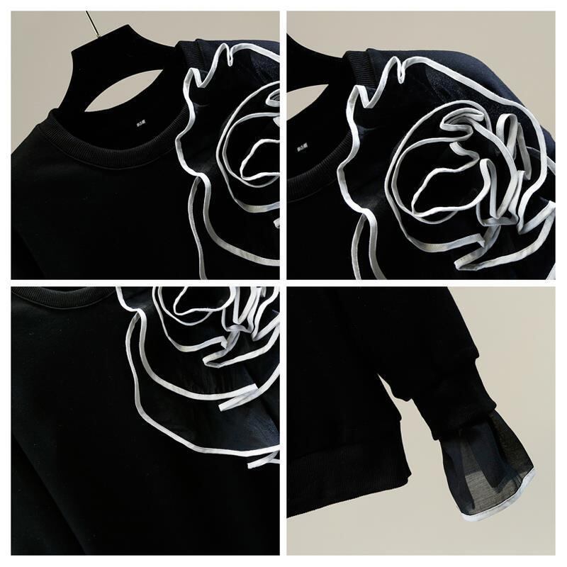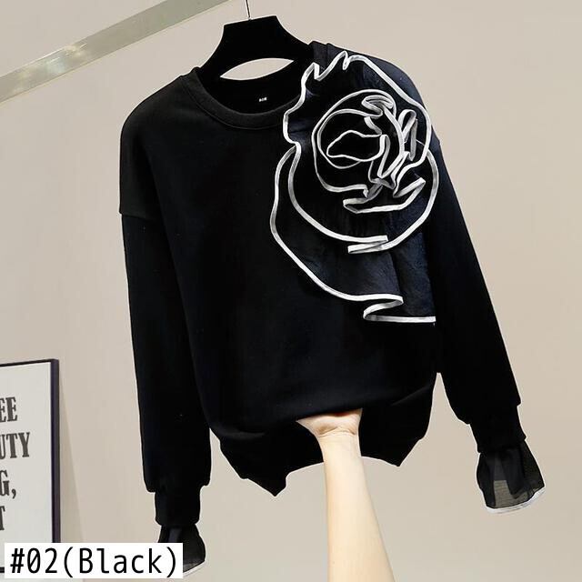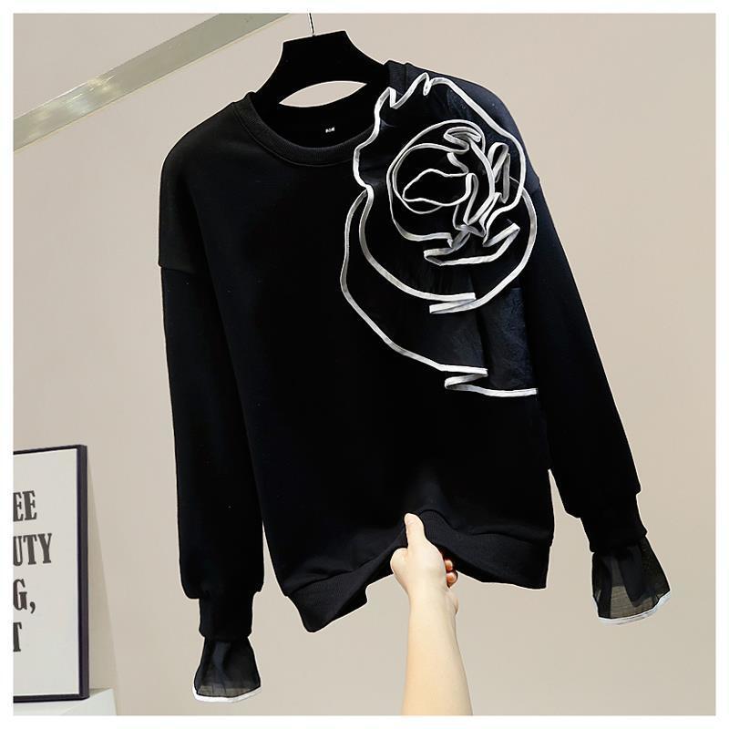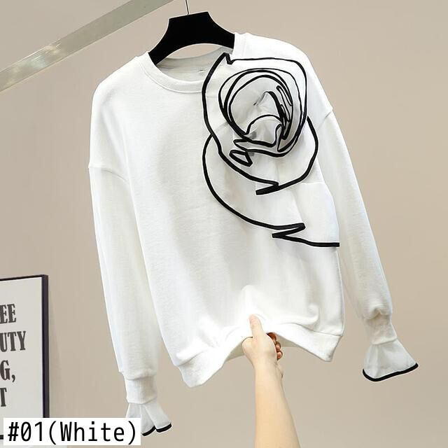 Nomikuma 3D 花 O ネックプルオーバースウェットシャツ因果長袖女性ジャンパー 2022 春パーカートップ ロング スプリング 春物 Oネック フラワーデザイン kor69932608094