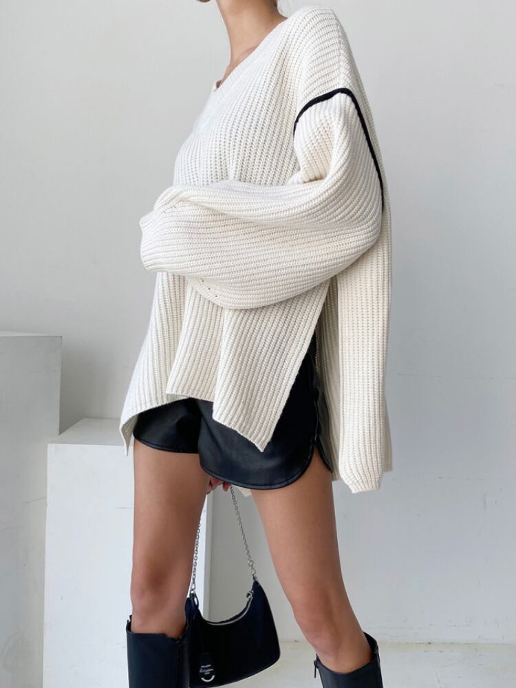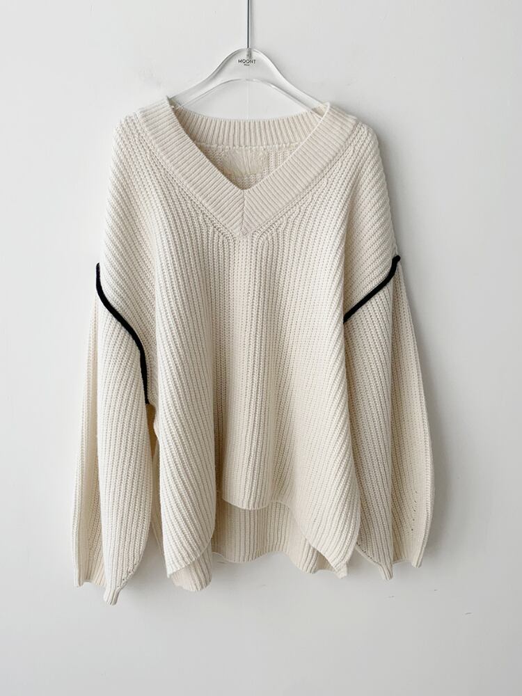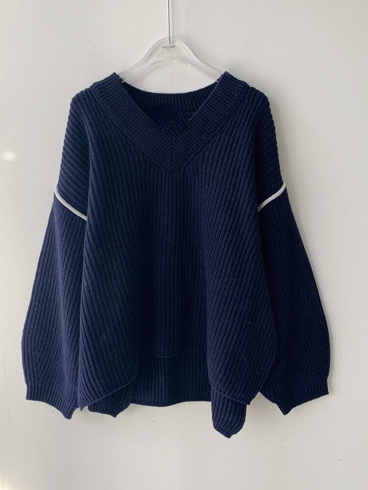 Nomikuma 因果パッチワークスプリットプルオーバーセーター長袖 V ネックプル 2022 秋冬女性ニットウェア ロング オータム 秋物 ウィンター 冬物 Vネック kor26147741859