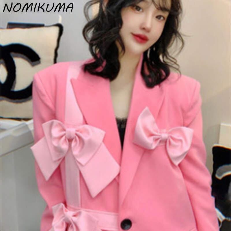 Nomikuma ブレザーコートシックな甘いちょう結びジャケット因果女性長袖ターンダウン襟スーツ 2022 春ブレザー ロング リボン 大人ガーリー スウィート キュート カジュアル スプリング 春物 kor96893178528