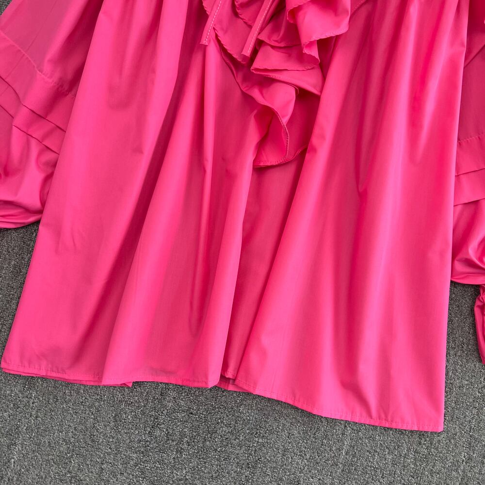 Nomikuma レースアップ V ネックフリル女性ブラウスパフ長袖トップス 2022 秋因果無地デモーダ ロング オータム 秋物 Vネック ソリッドカラー kor40828063076