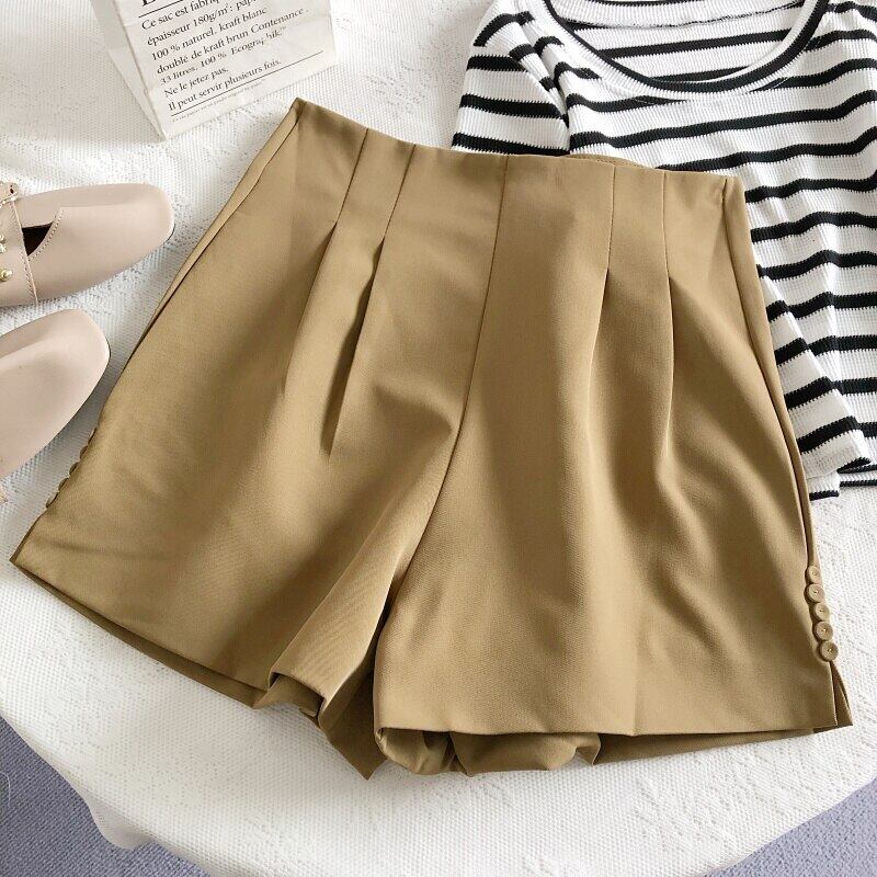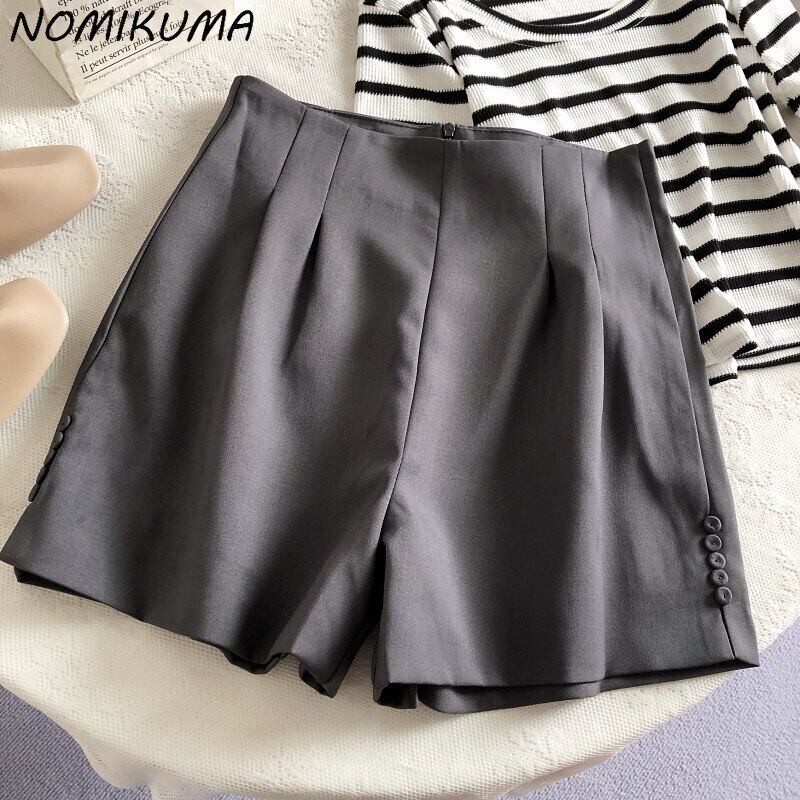 Nomikuma ウエストスーツショーツ女性 2022 ボトム因果無地ボタンスプリットワイドレッグショート Feminimos ブルマー ワイドパンツ ソリッドカラー kor7931688662