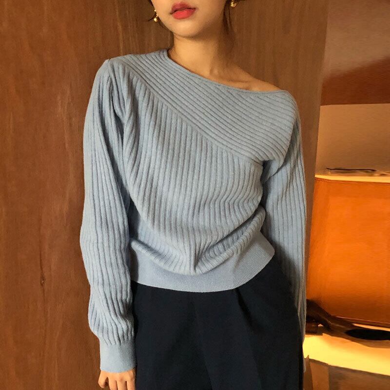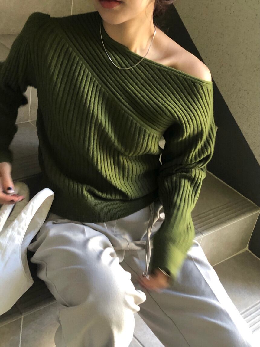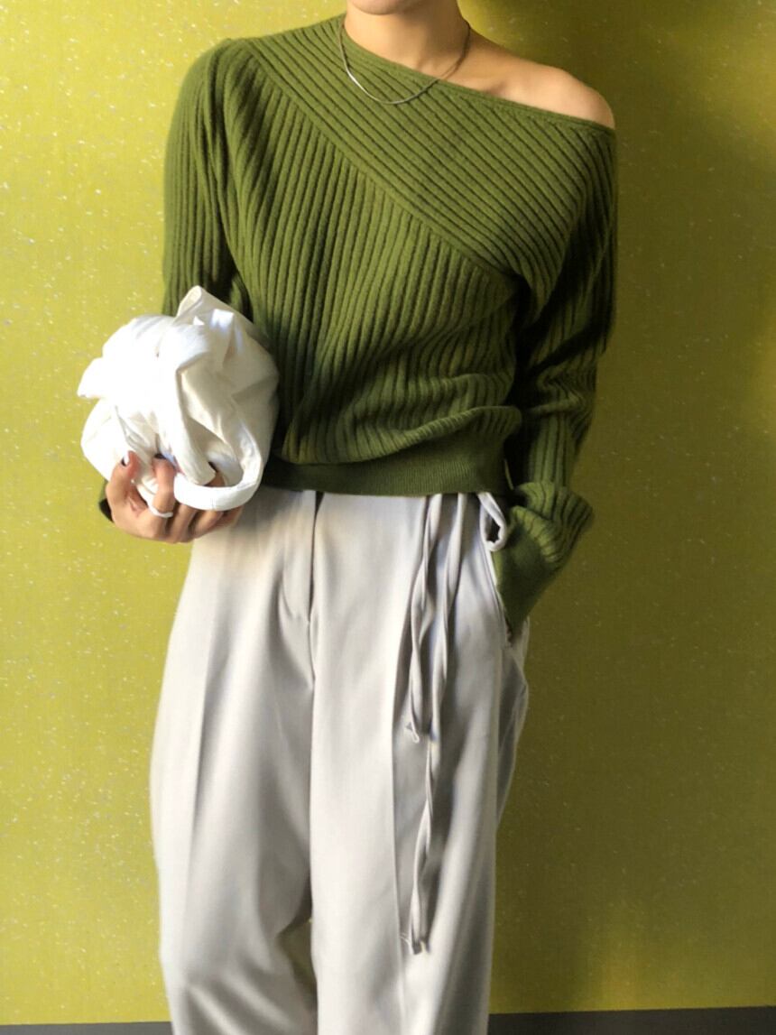 ノミクマ イレギュラー ストラップレス 長袖 プルオーバー ニット 2022秋冬 プルニット トップス ロング オータム 秋物 ウィンター 冬物 kor1443841552