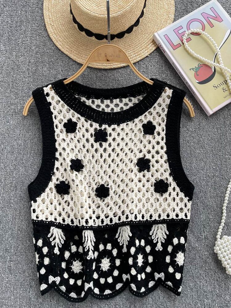 Nomikuma ヒットカラーフック中空アウトノースリーブベスト 2022 シックなレディーストップ因果甘いプルオーバーベスト服 大人ガーリー スウィート キュート カジュアル kor45511918223