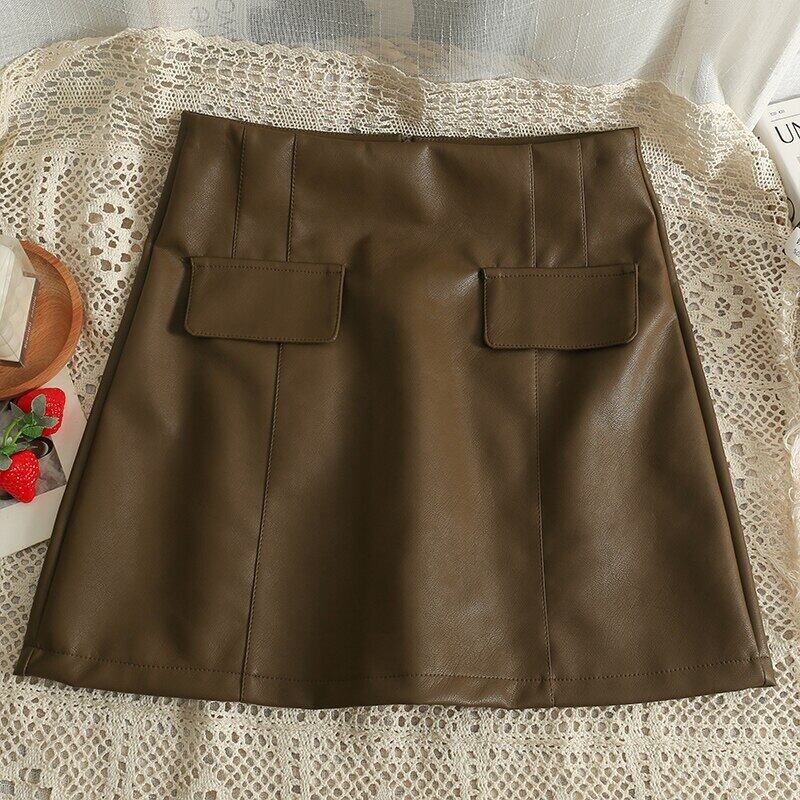 Nomikuma PU レザーミニスカート女性 2022 秋冬ボトムス A ラインスカート段 Faldas デ オータム 秋物 ウィンター 冬物 Aライン kor14328850544